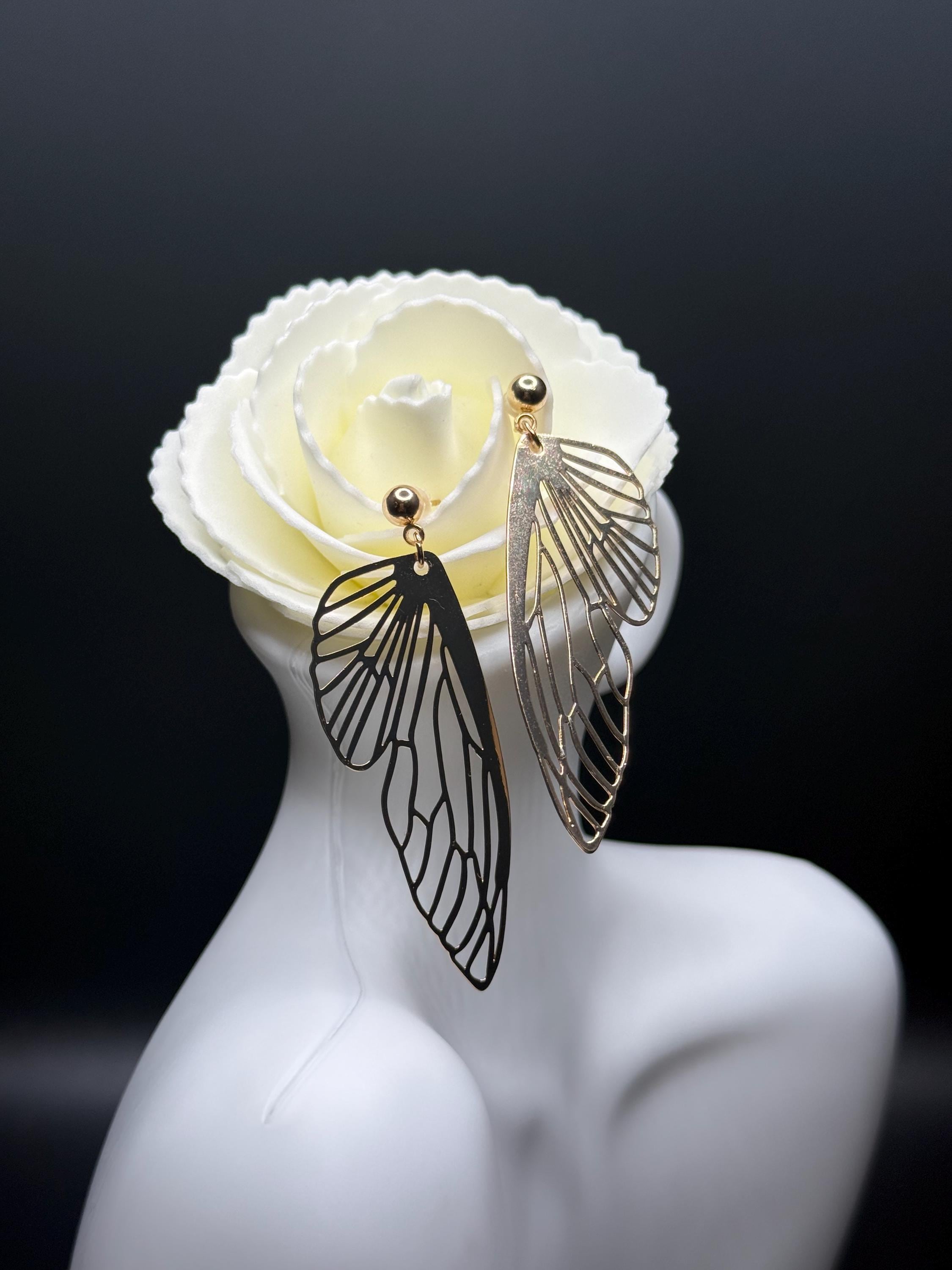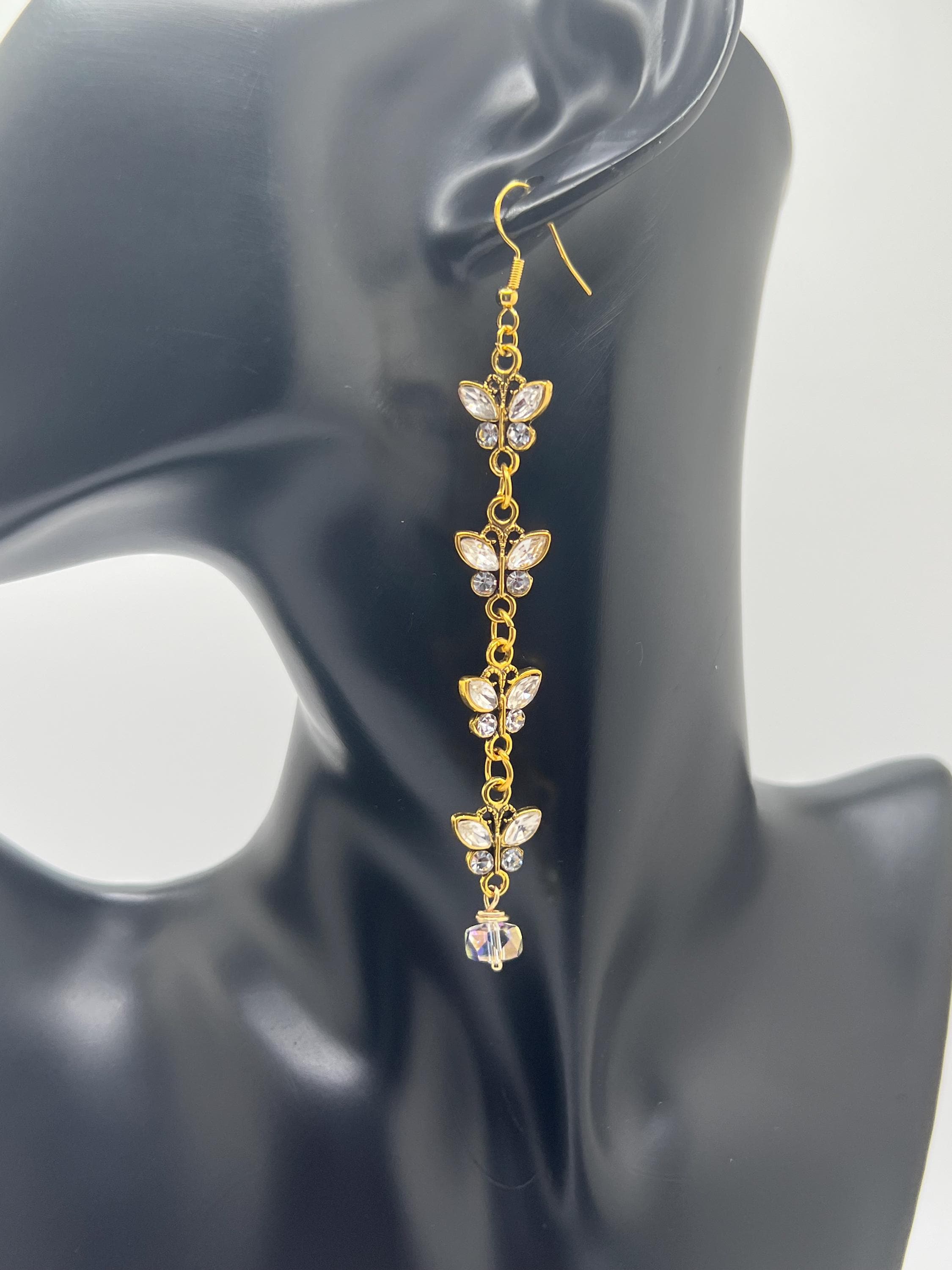 Gold Butterfly Long Dangle Earrings