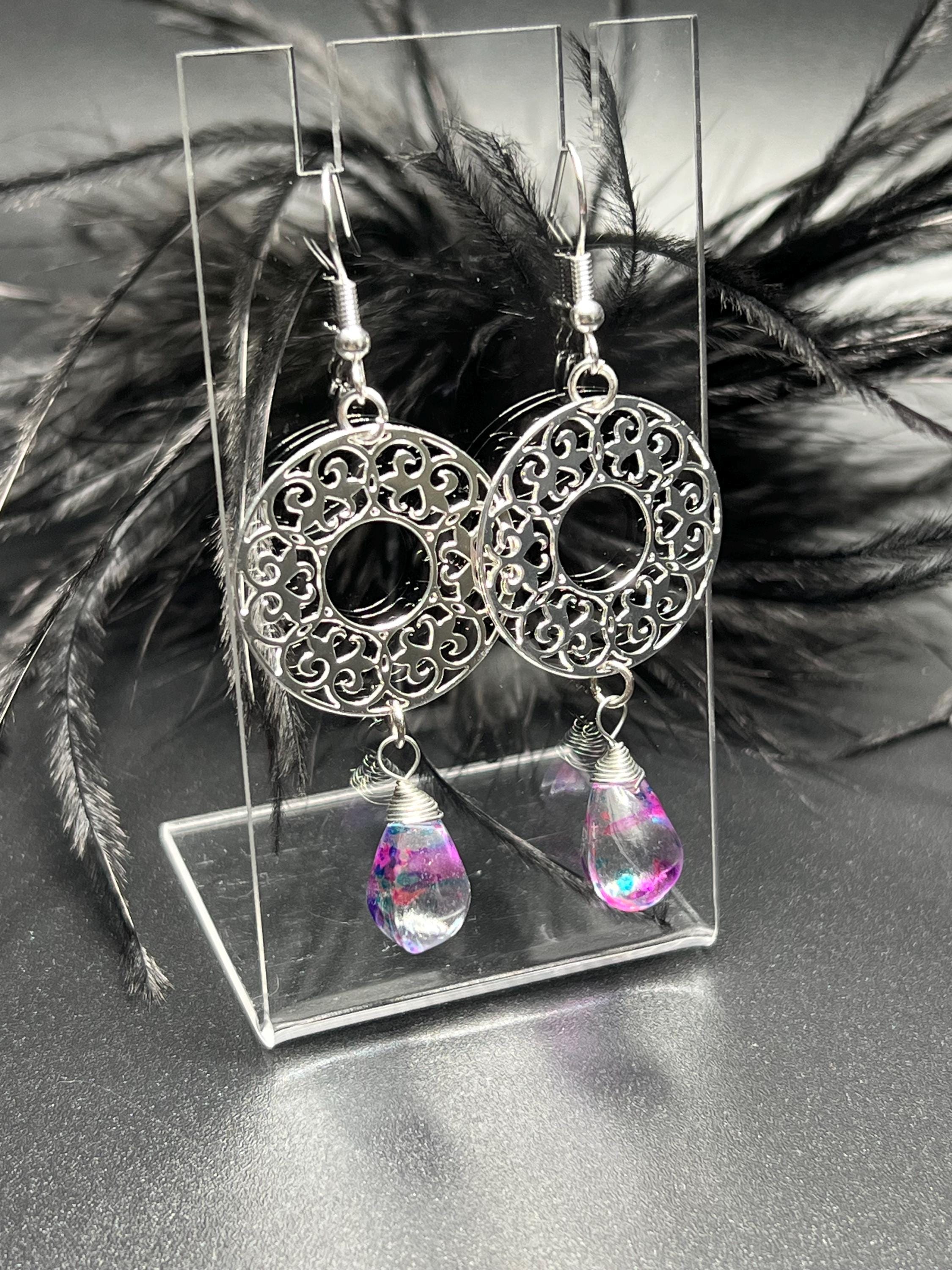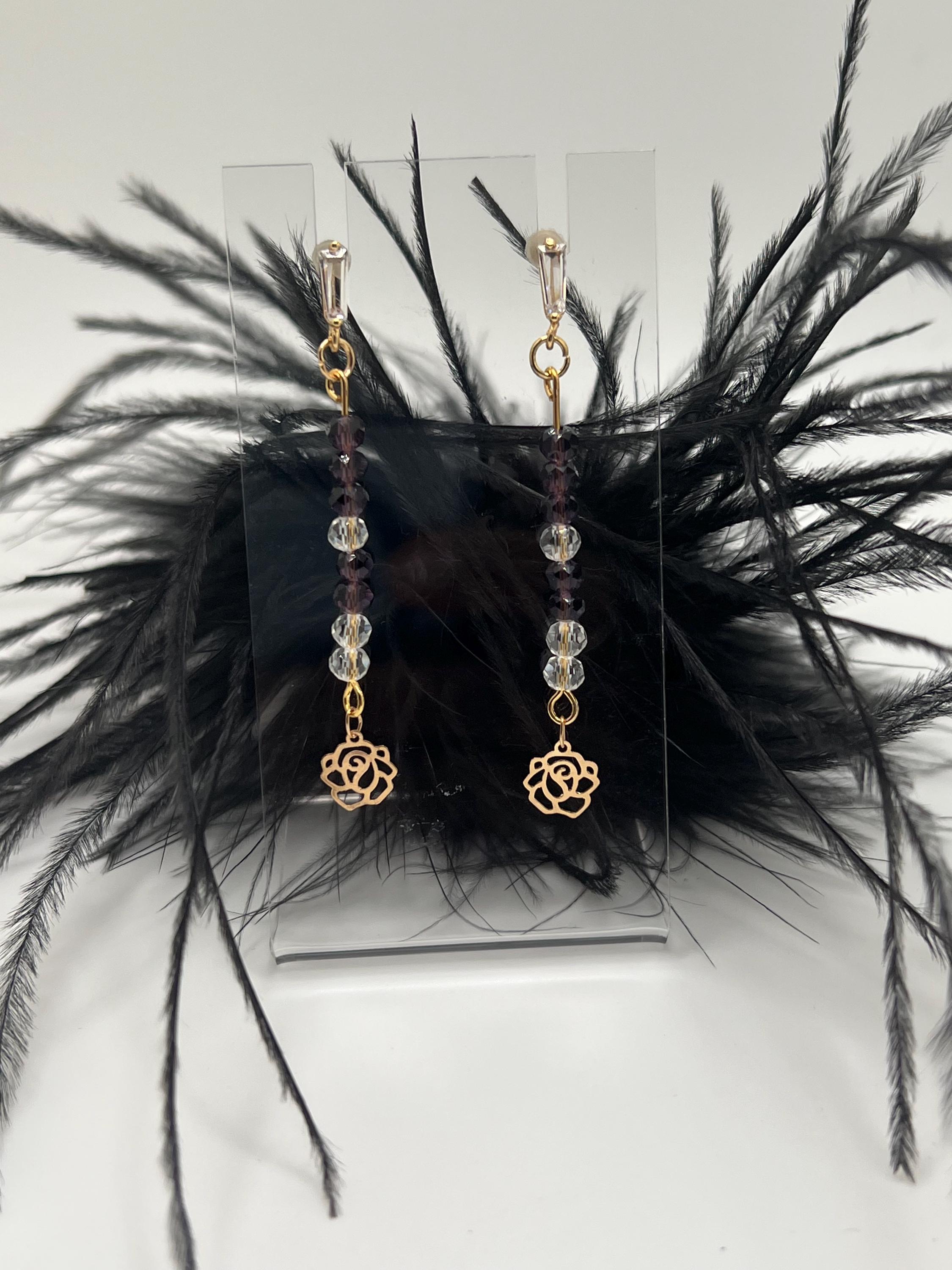 Purple Crystal Flower Charm Earrings