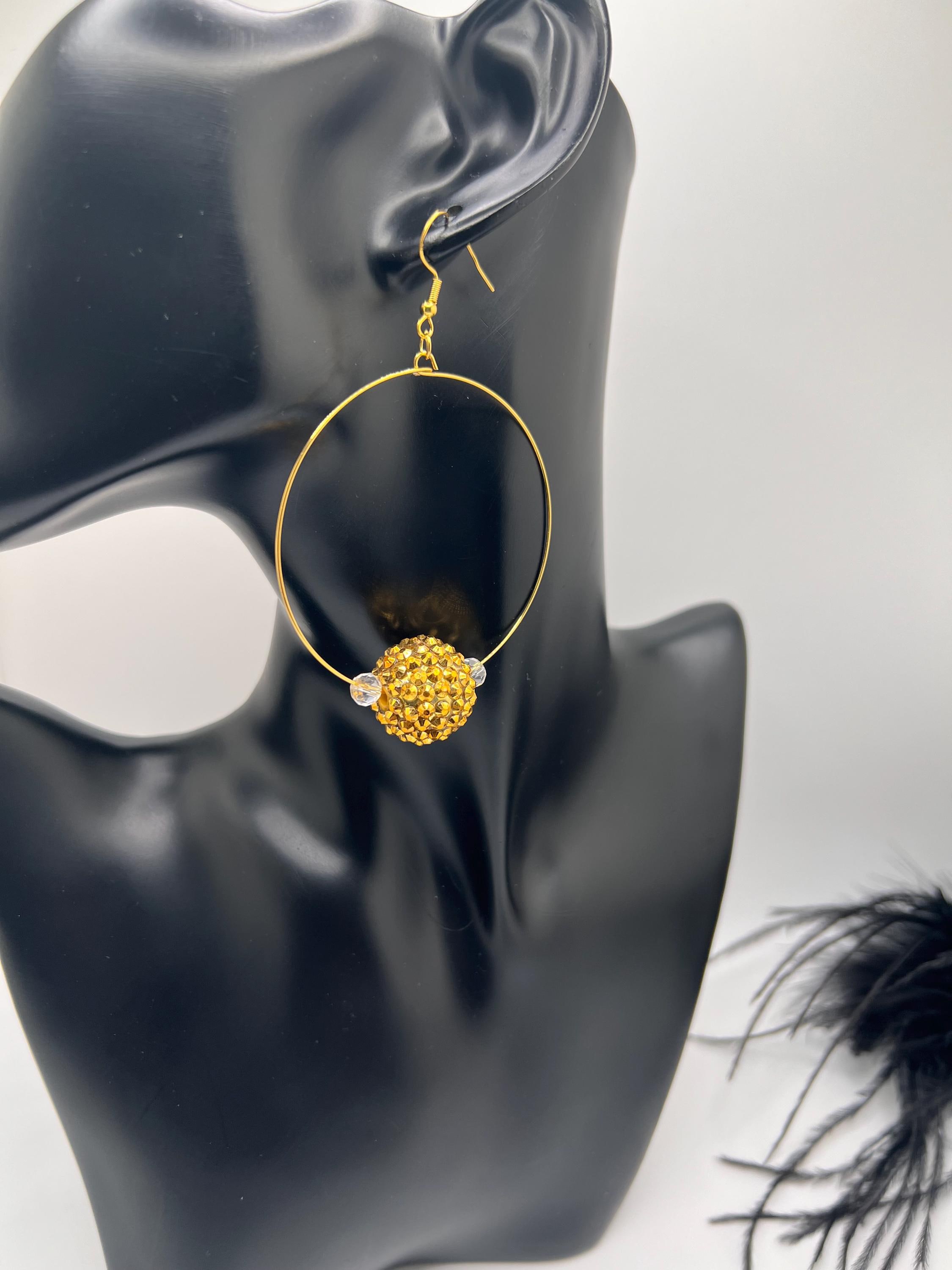 Gold Bling Ball Hoop Earrings