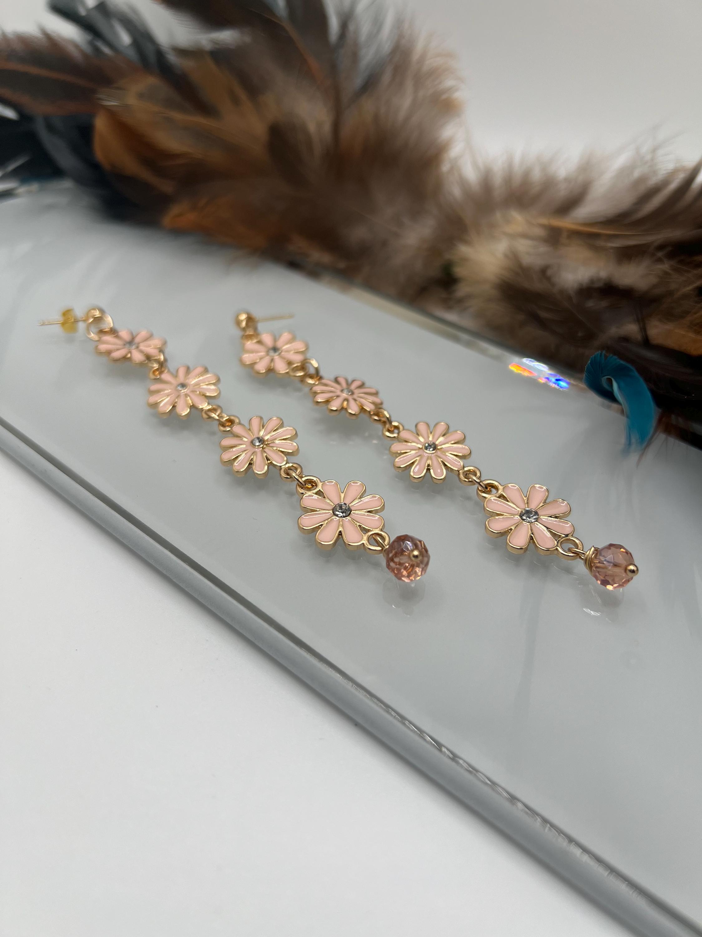 Long Pink Flower Earrings