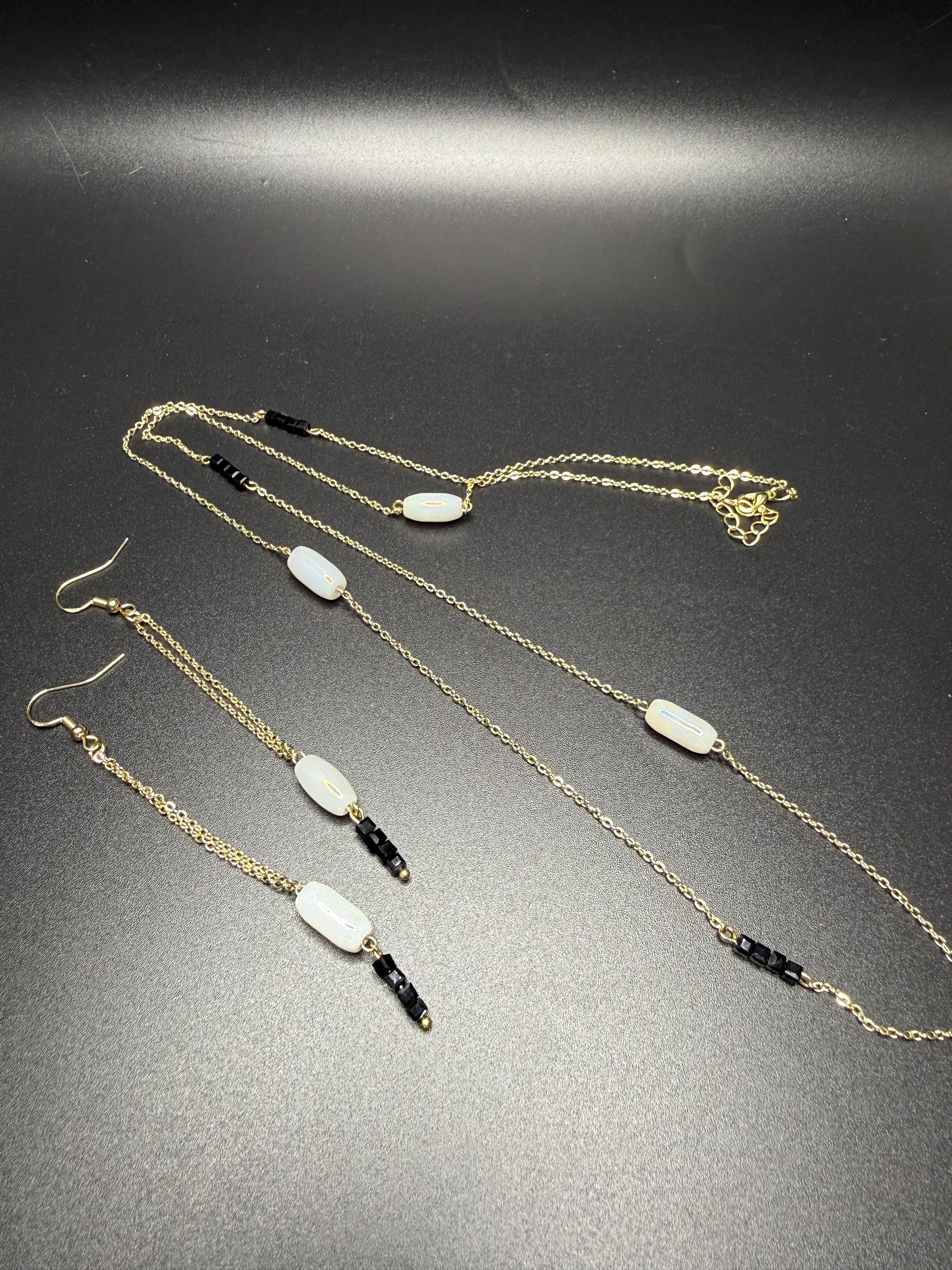 White Black and Gold Necklace Set