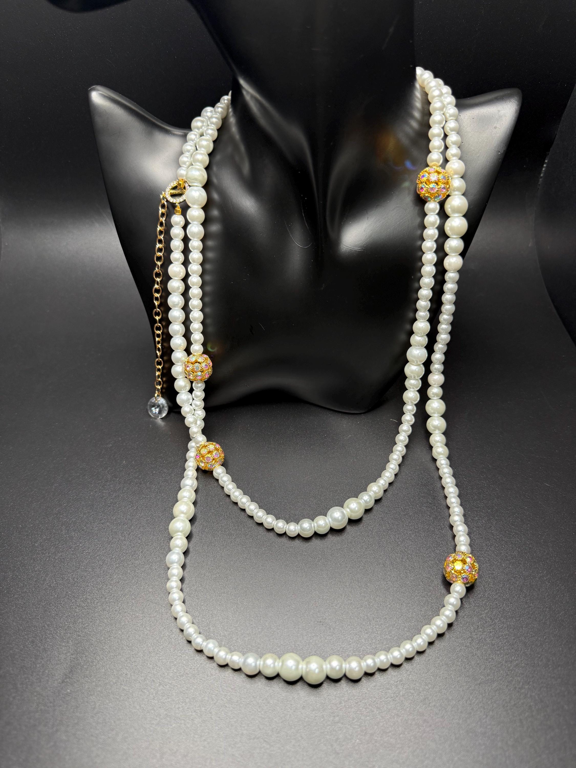 Long Pearl Necklace with Toggle Clasp