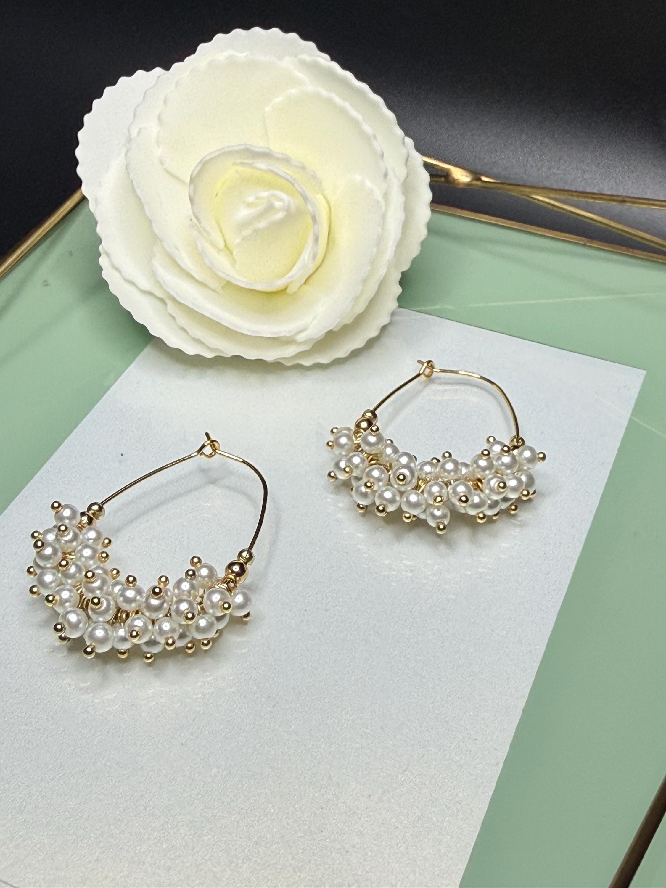 Pearls and Gold Hoop Earrings