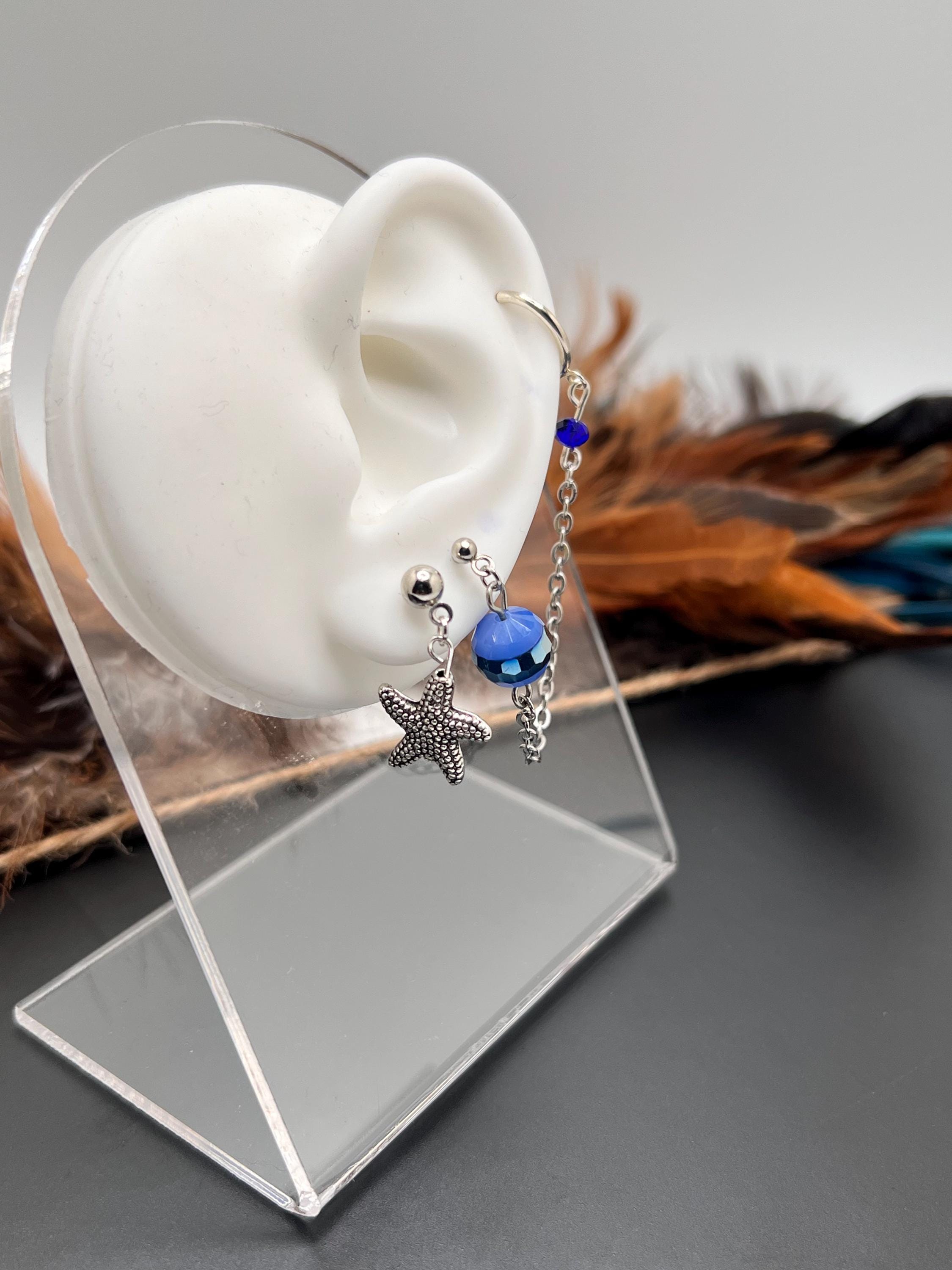 Blue Nautical Charm Stack Earrings