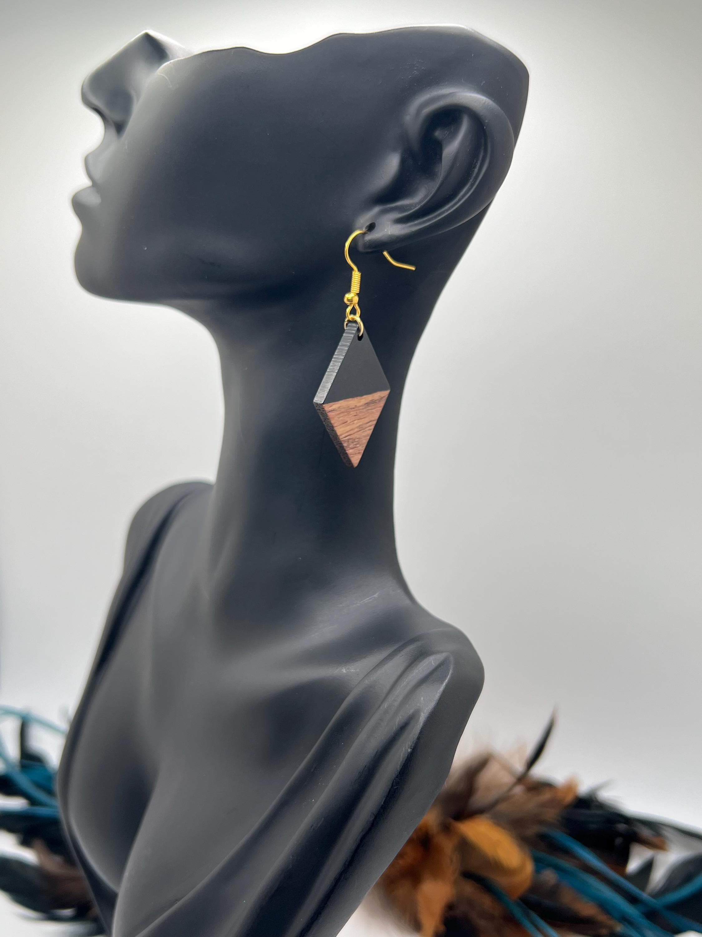 Black Wood Diamond Shape Earrings