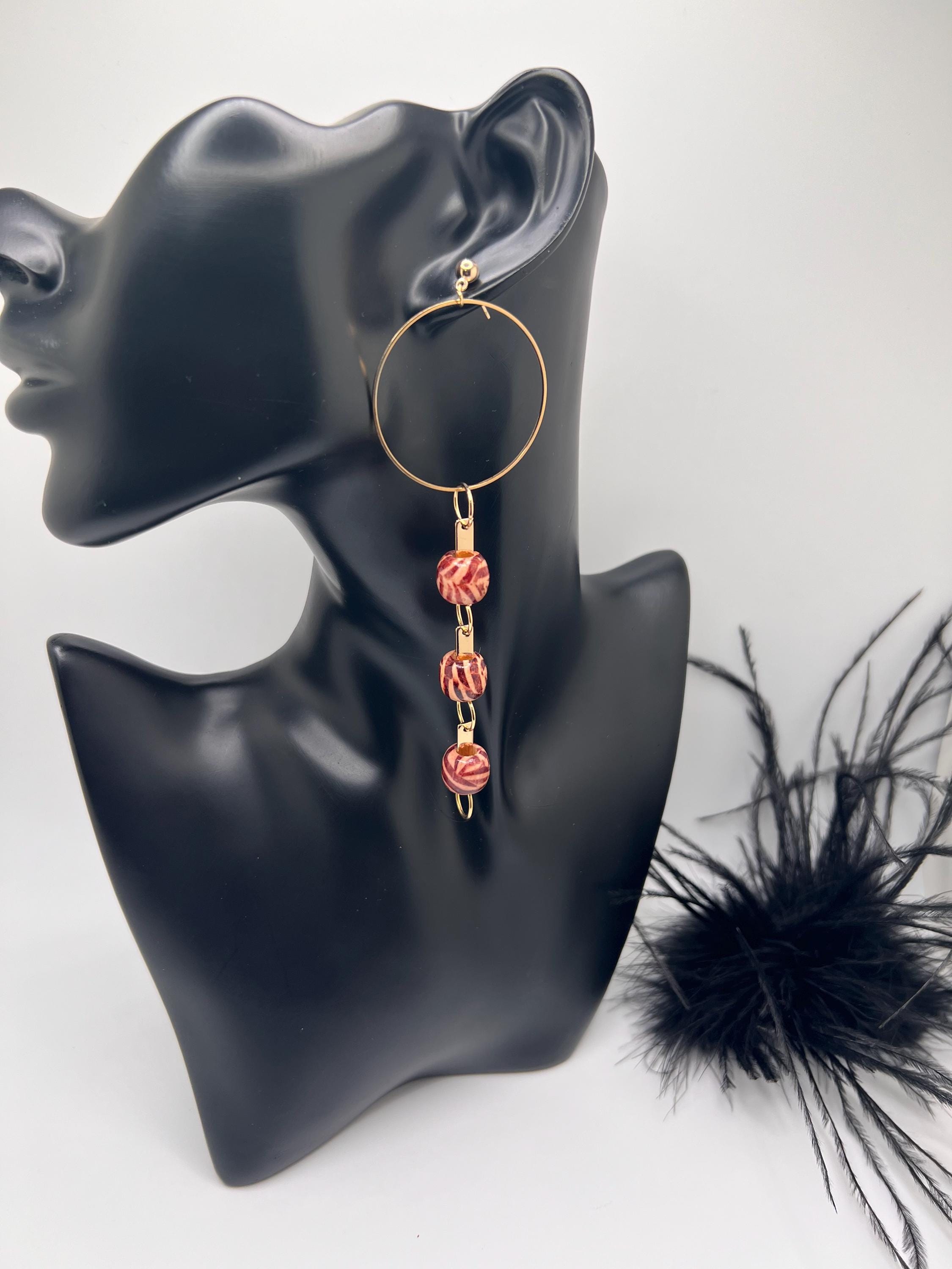 Copper Wood Beaded Earrings
