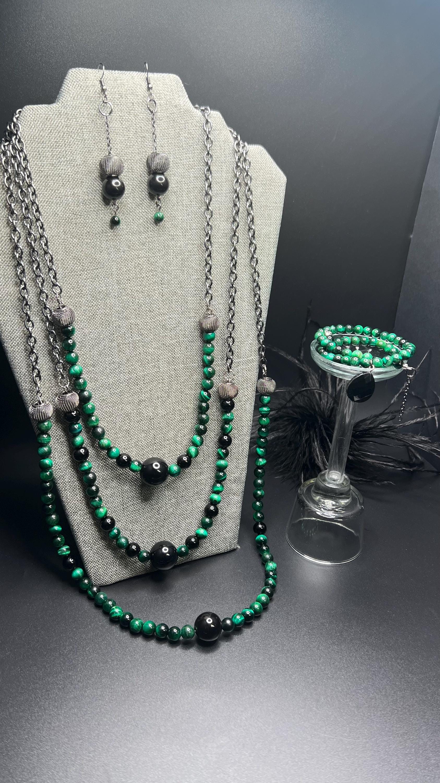 Green and Black Beaded Necklace Set