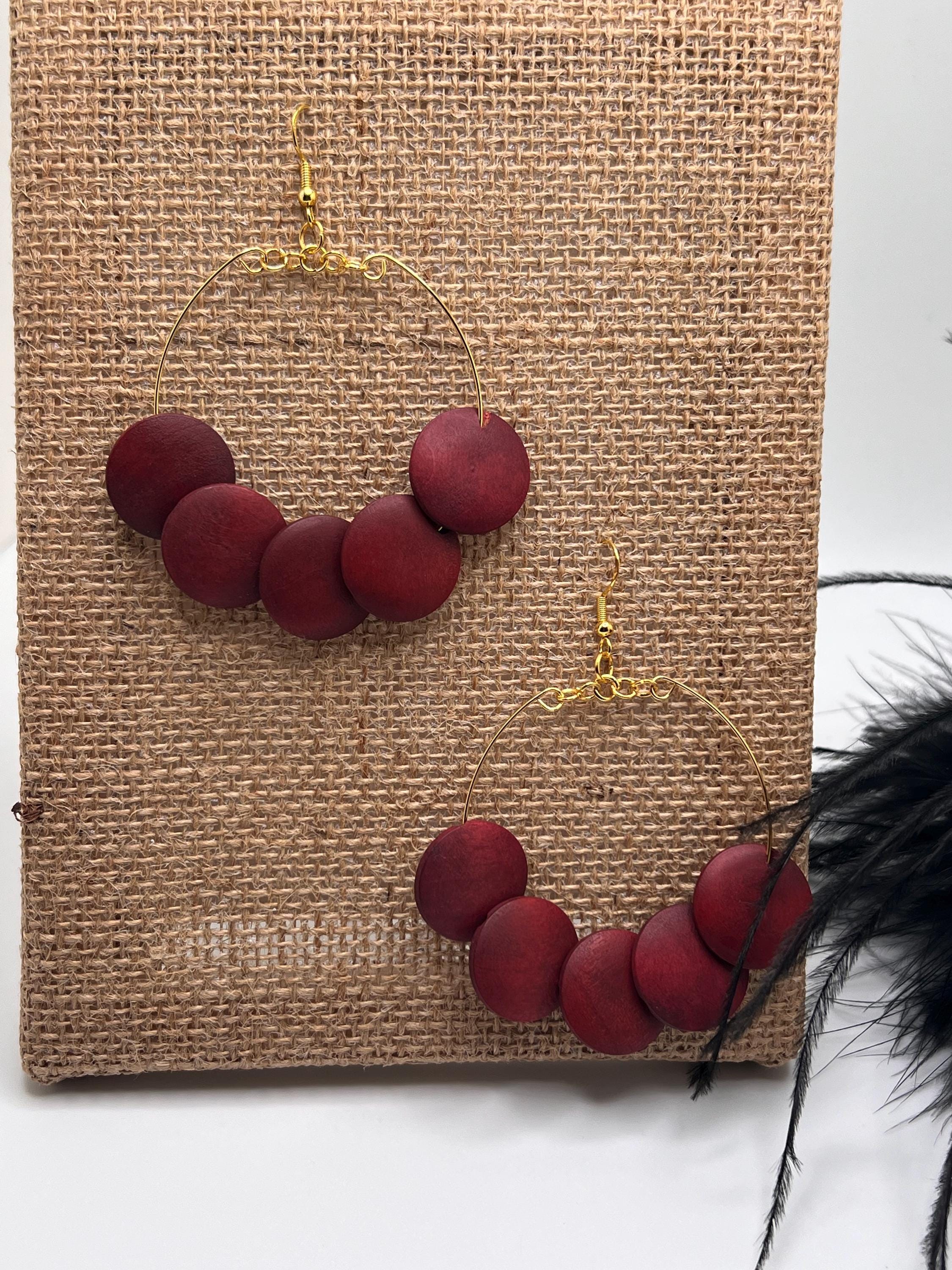 Boho Wood Hoop Earrimgs