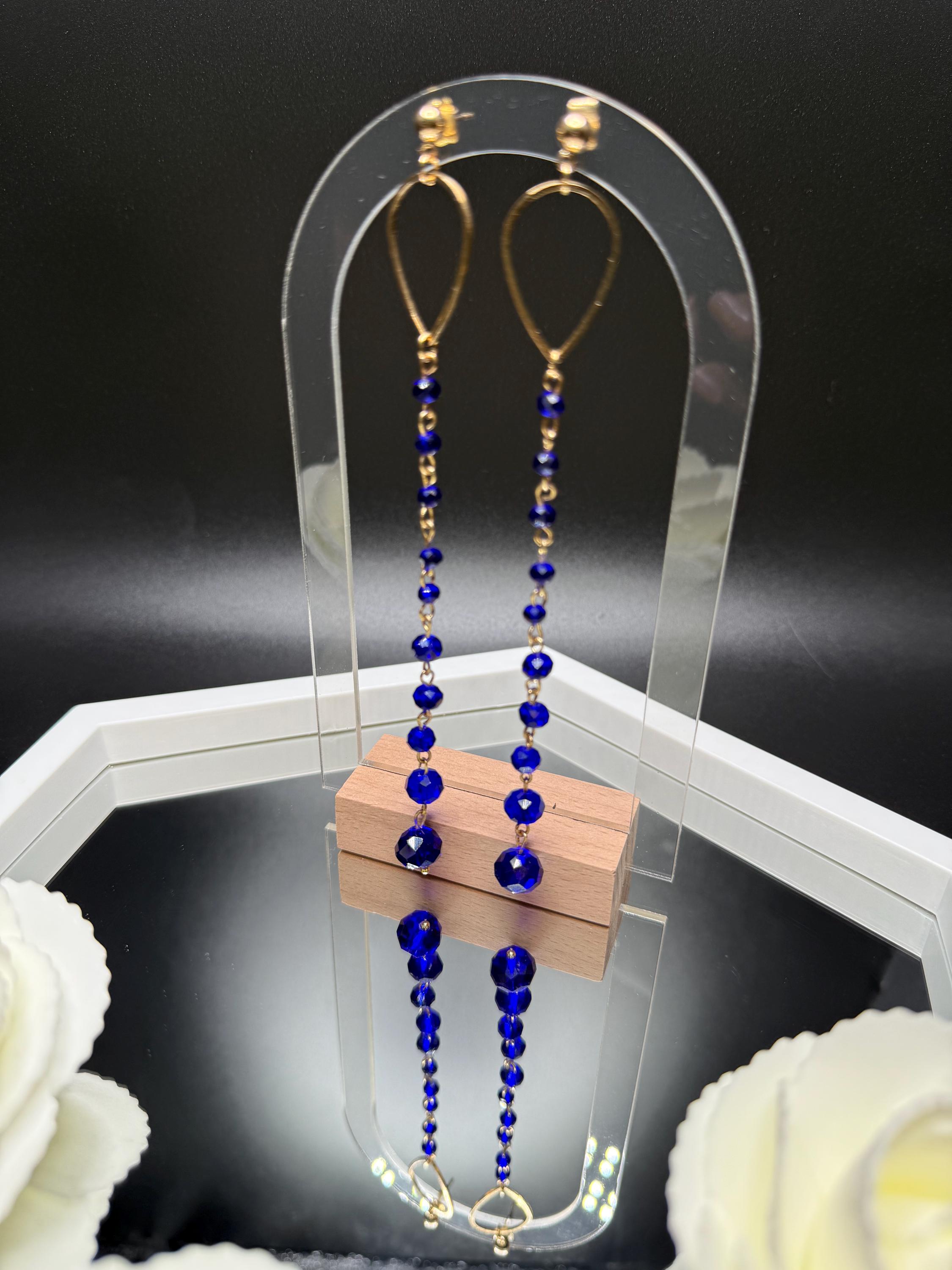 Blue Crystal Beaded Long Earrings