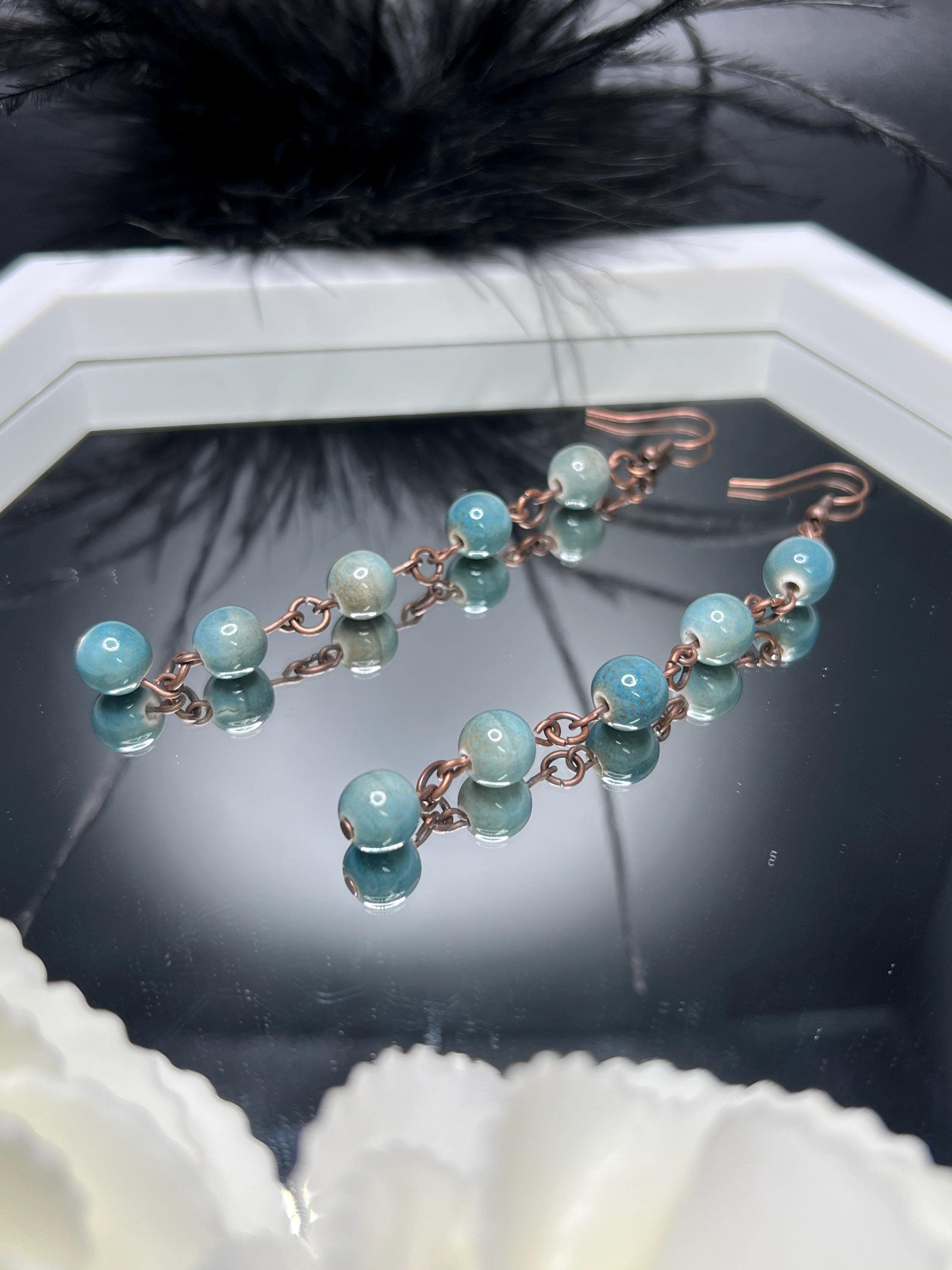 Blue Stone Copper Drop Earrings