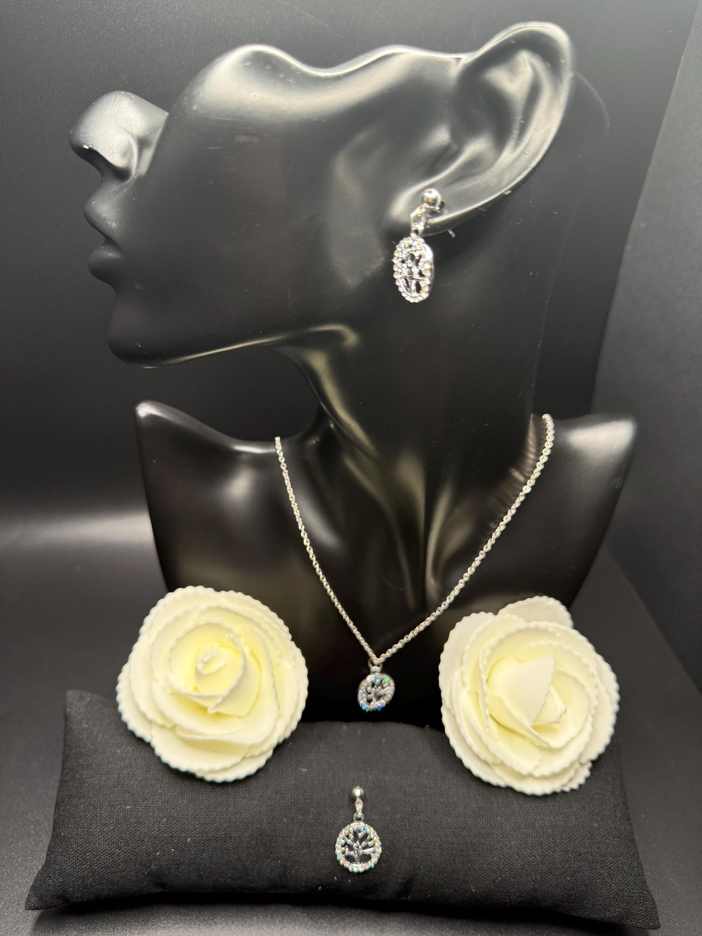 Silver Bling Tree of Life Necklace Set