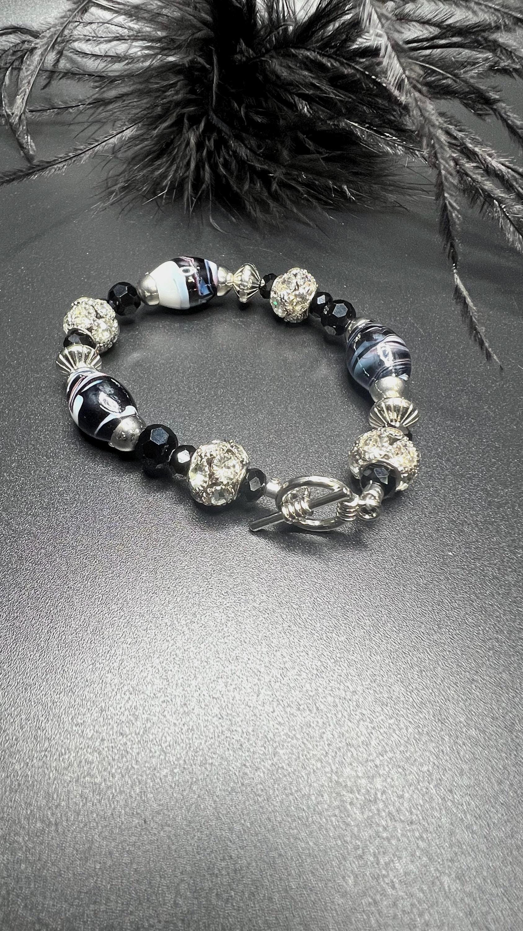 The bracelet features a toggle clasp, providing an effortless yet secure closure that ensures comfort and style with every wear. Imagine the gentle clink of beads as the bracelet moves, adding an enchanting melody to your day. Transform your ensemble with this Blue and Silver Bracelet, a perfect blend of classic elegance and modern chic. It's more than a piece of jewelry; it's an expression of art that graces your wrist with unmatched beauty.