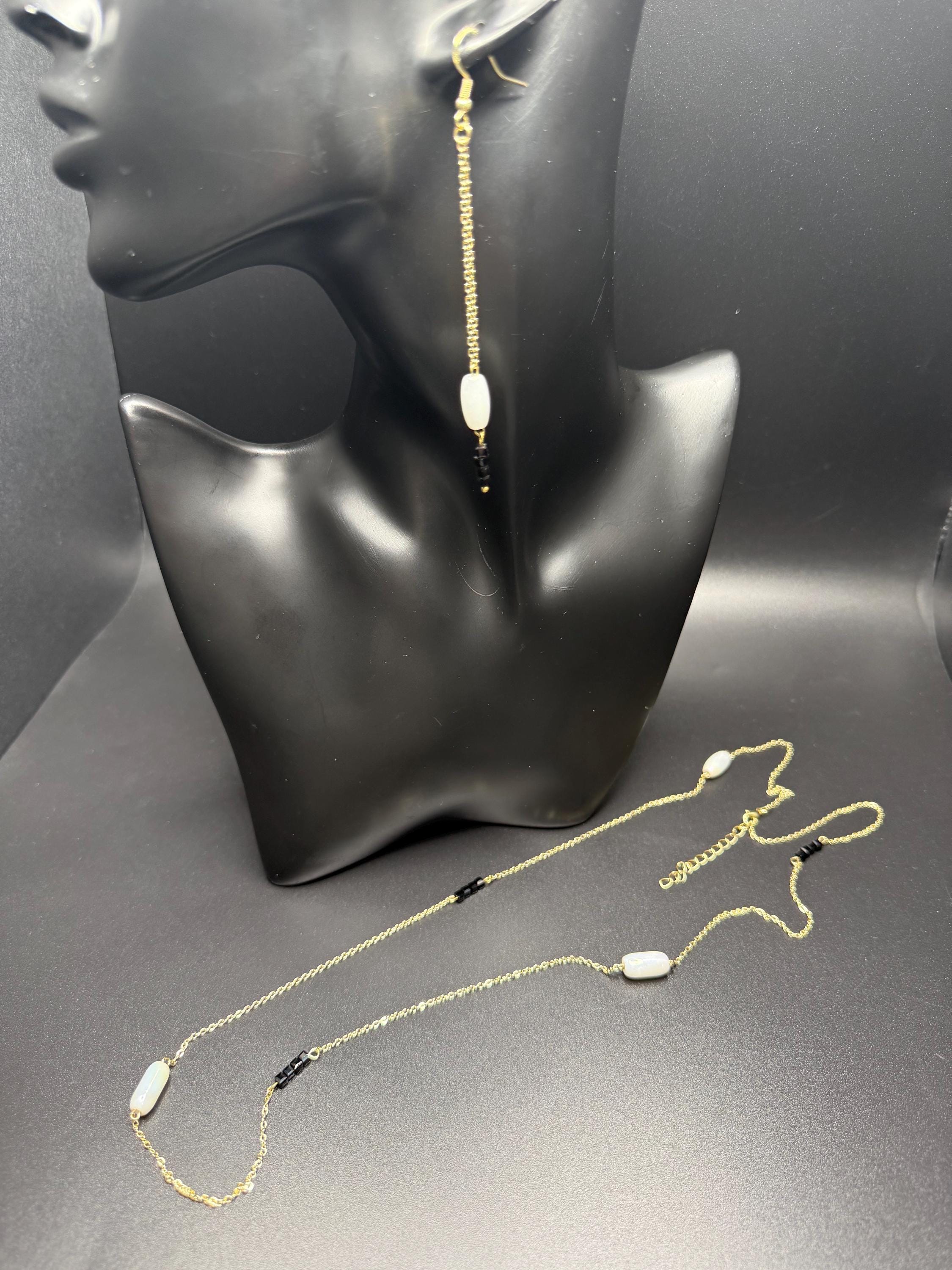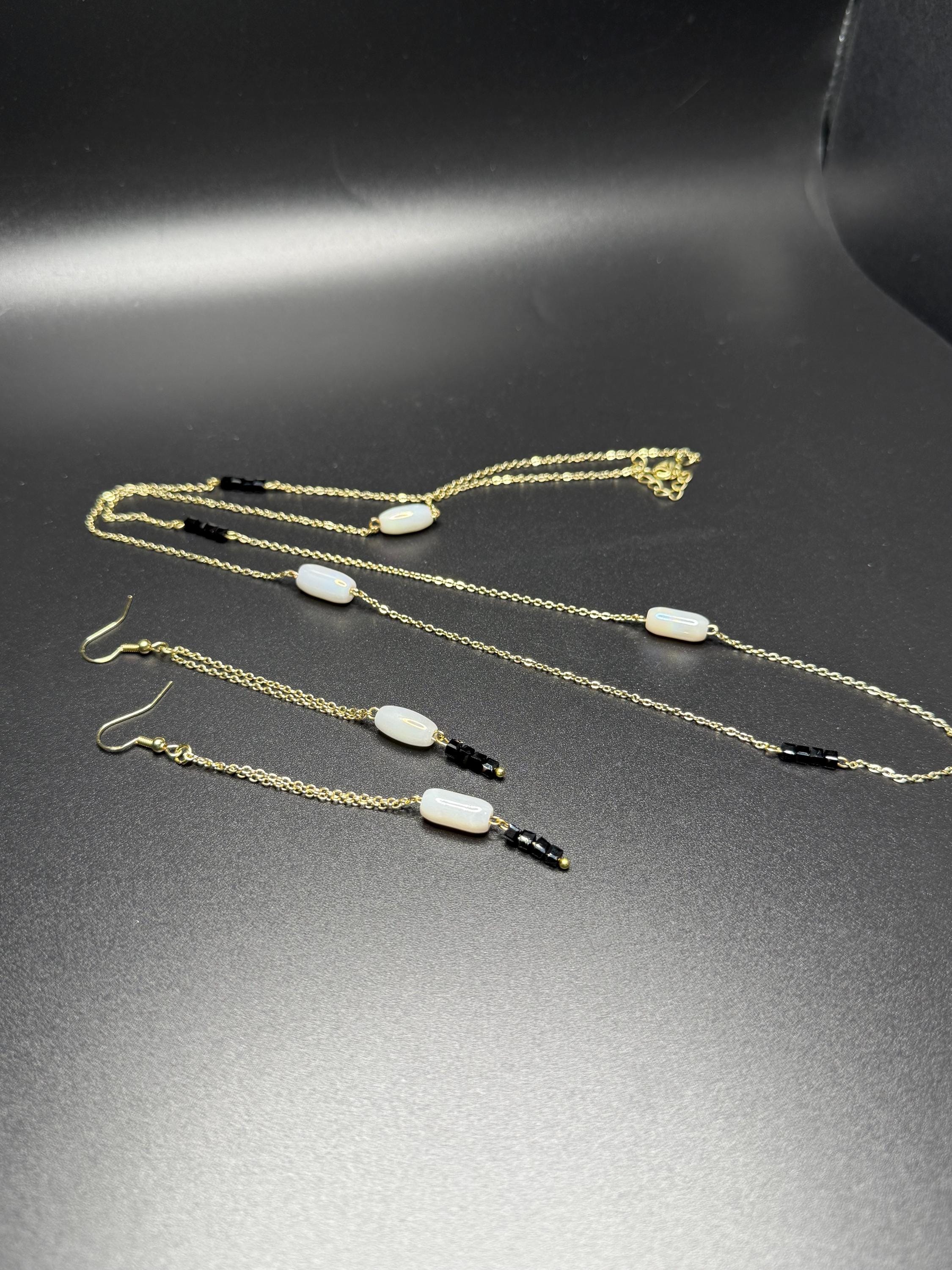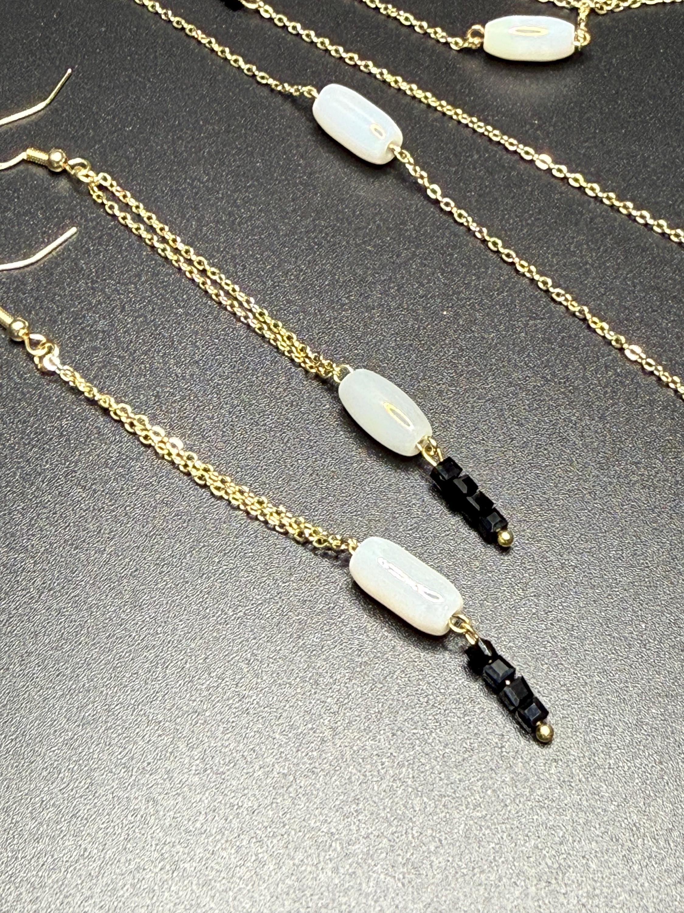 White Black and Gold 2pc Necklace Set