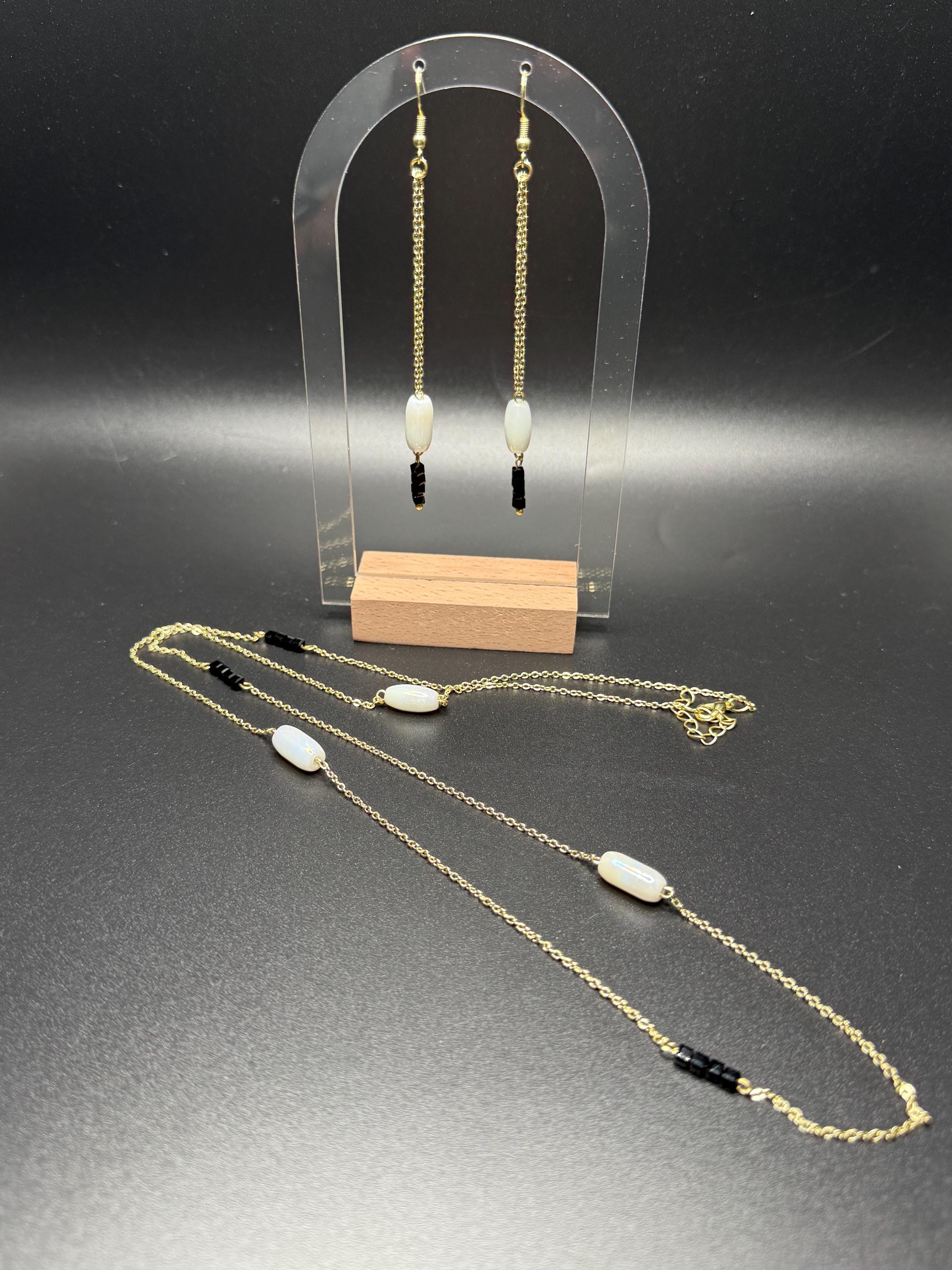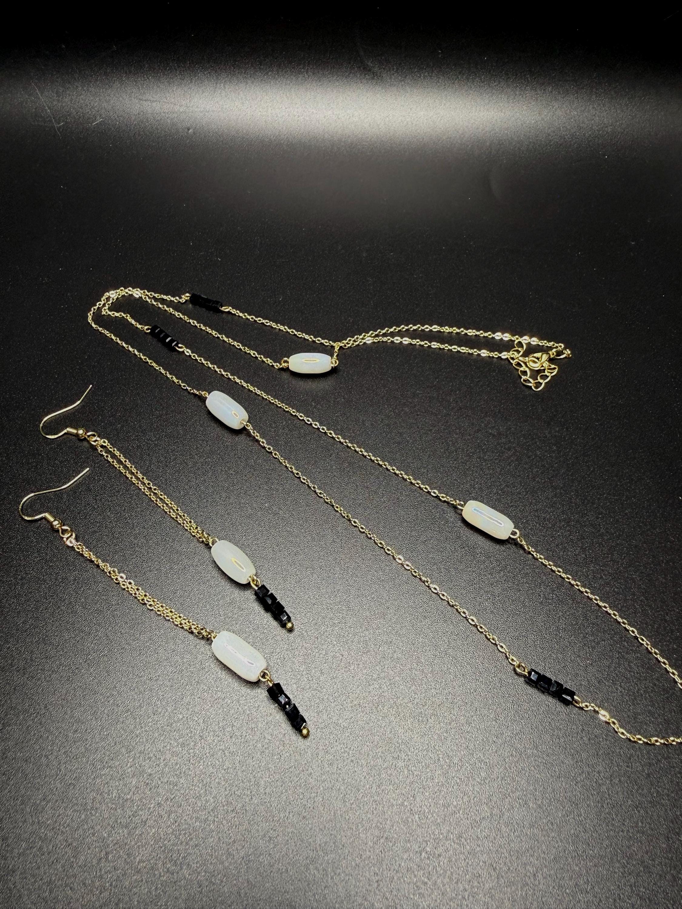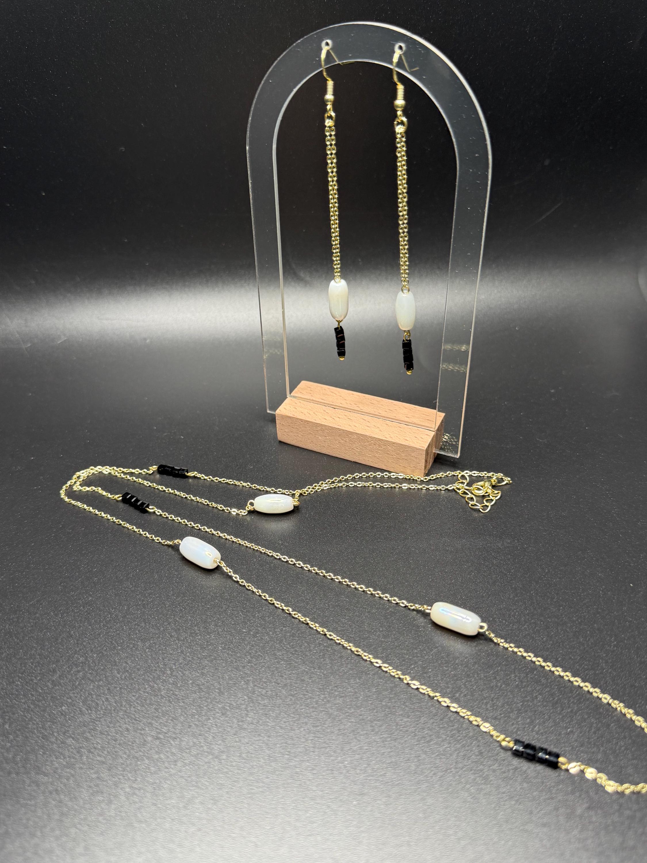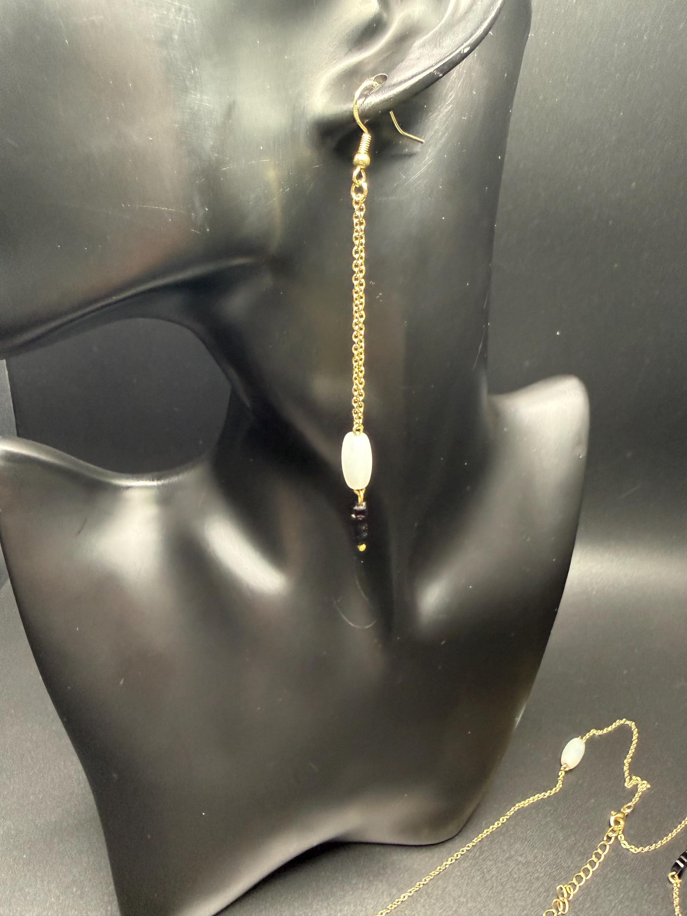 White Black and Gold 2pc Necklace Set