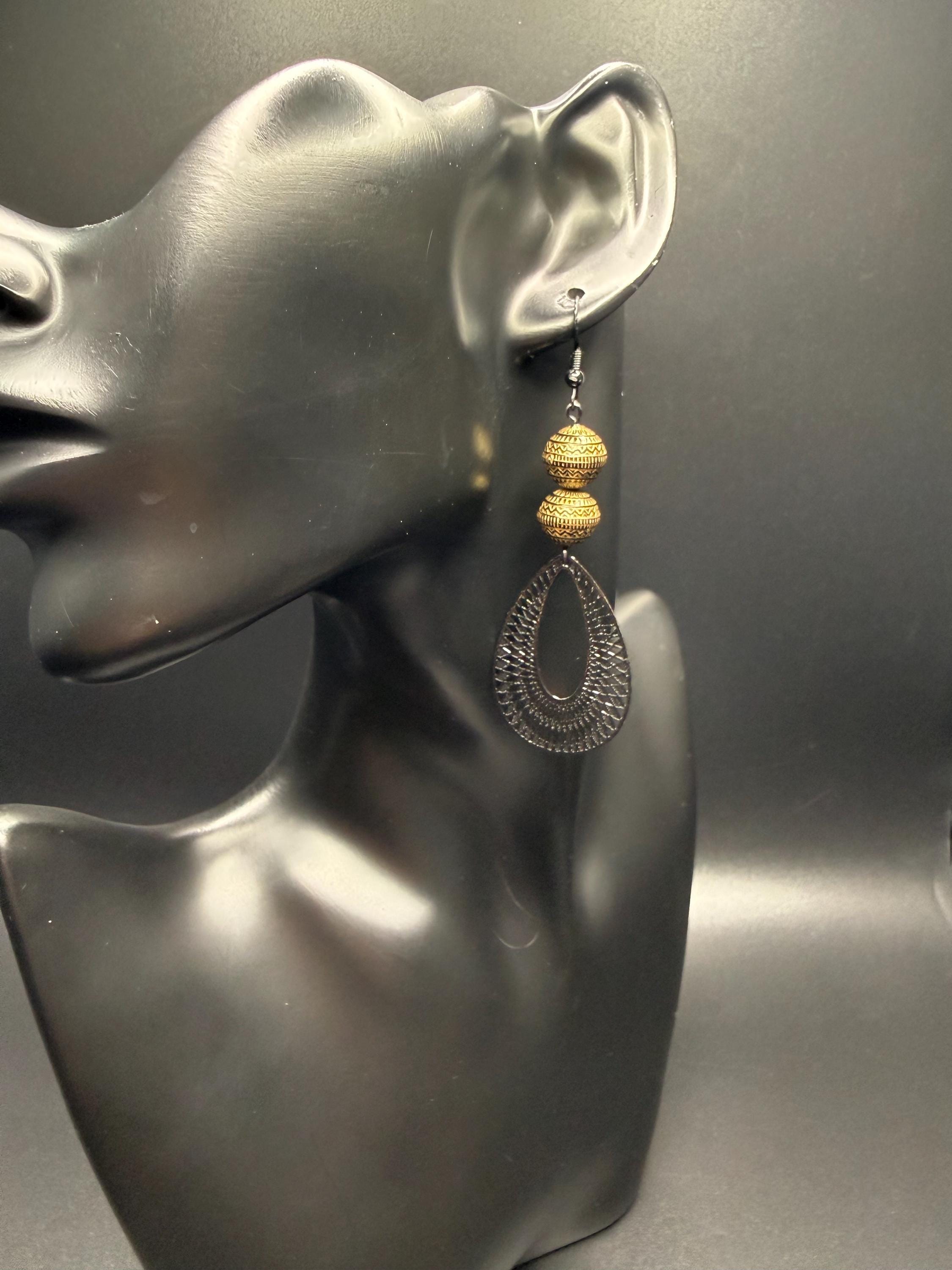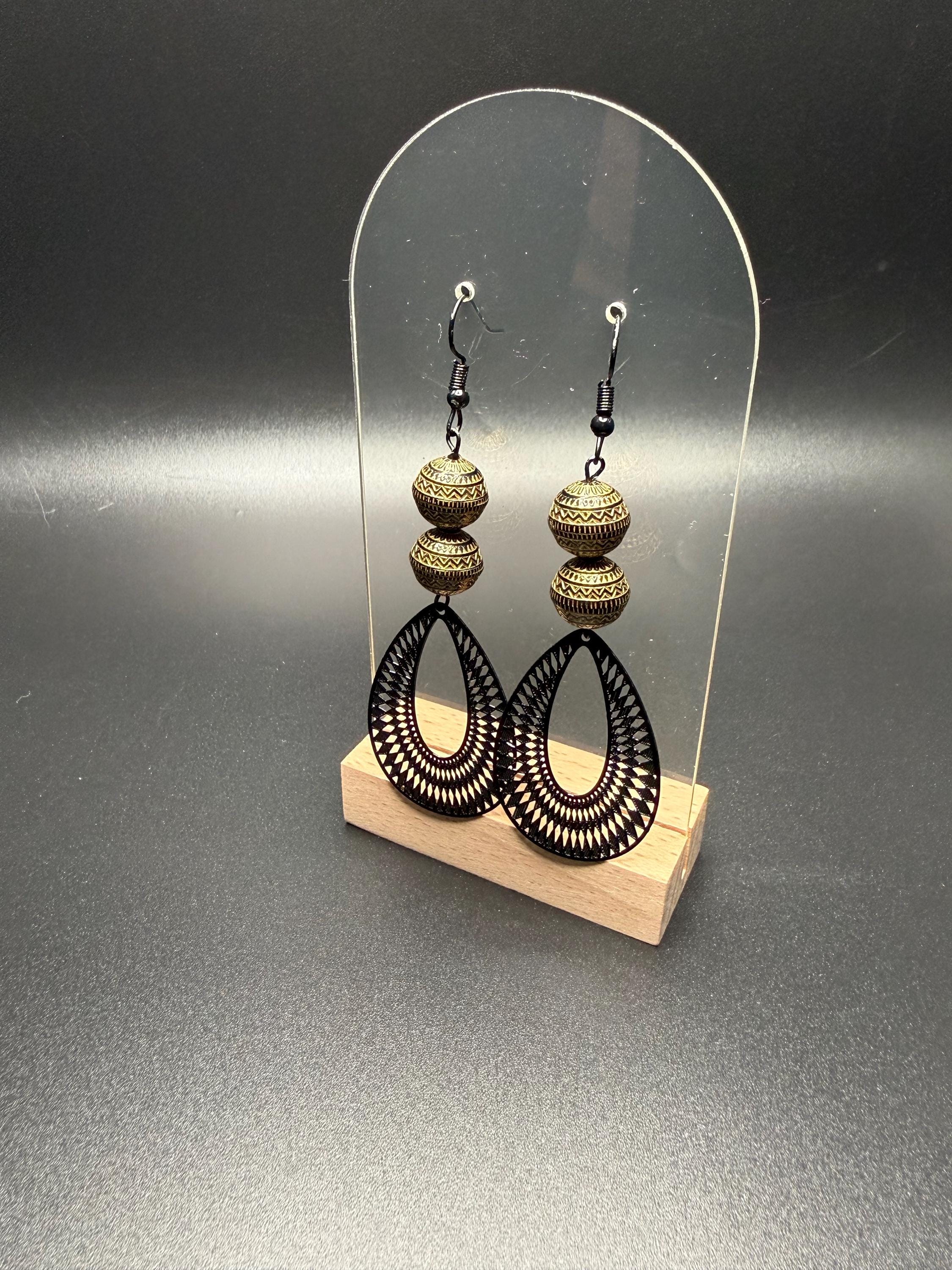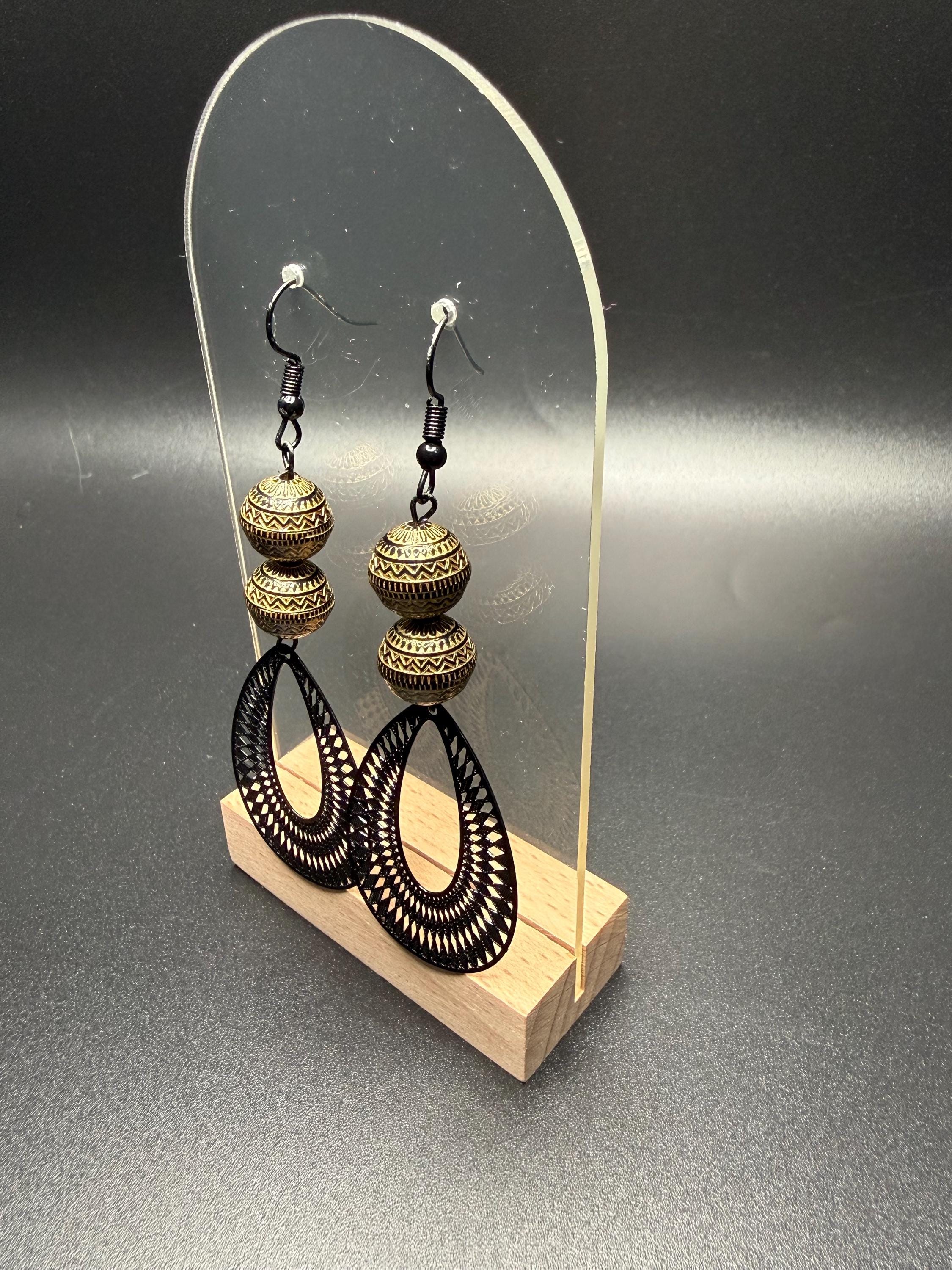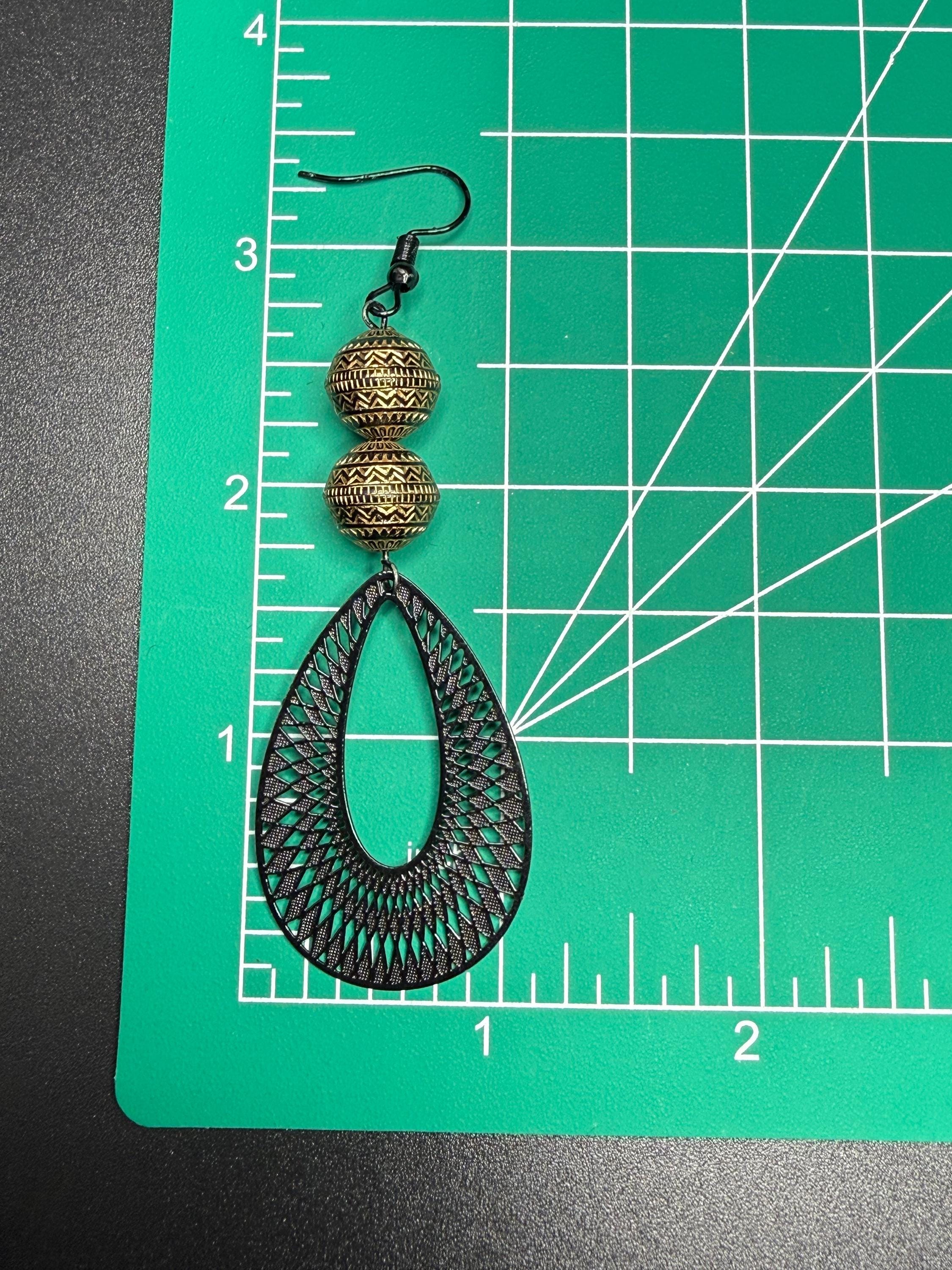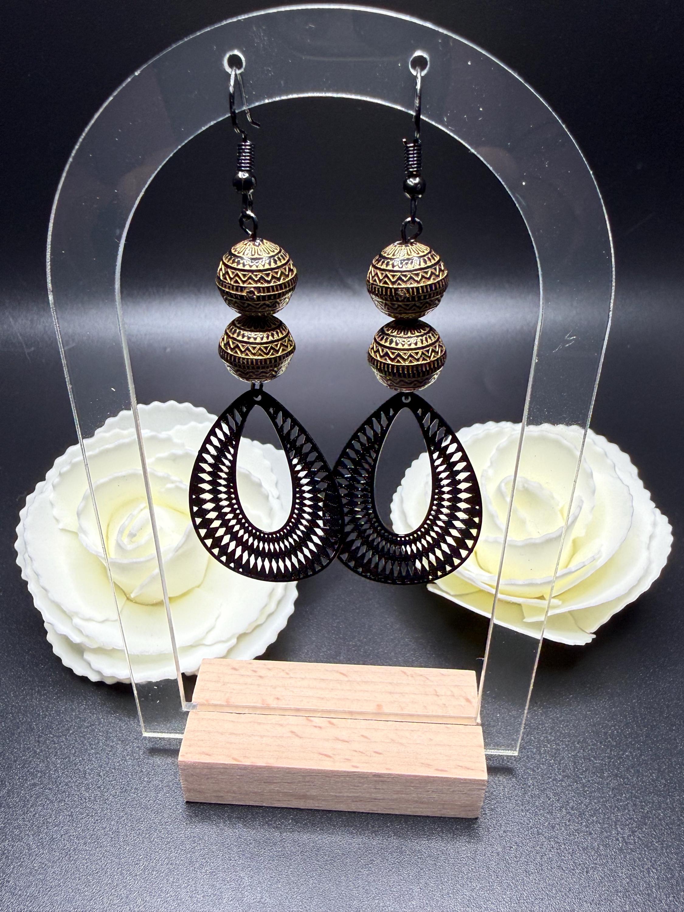 Bronze and Black Beaded Black Filagree Hoop Earrings