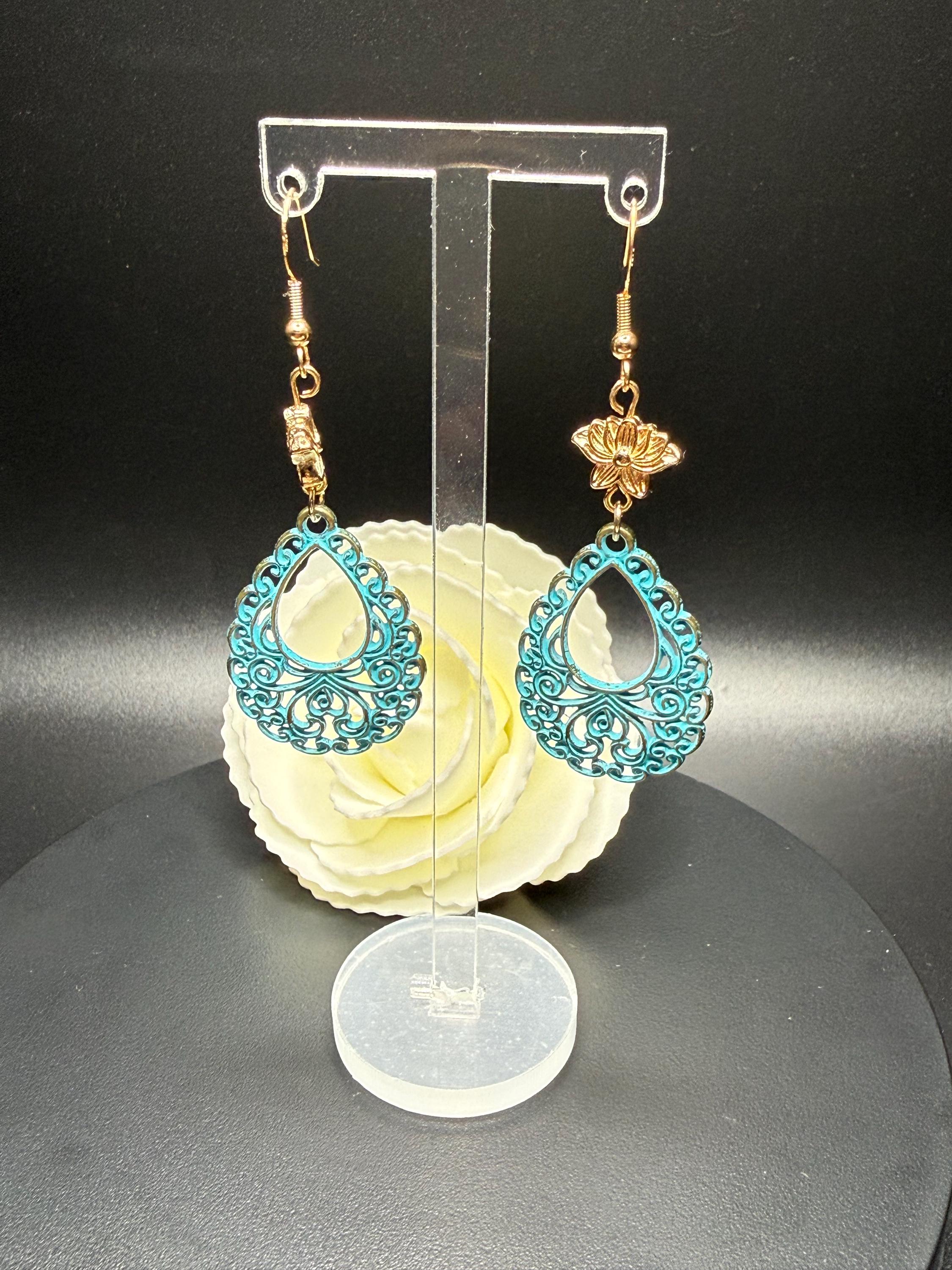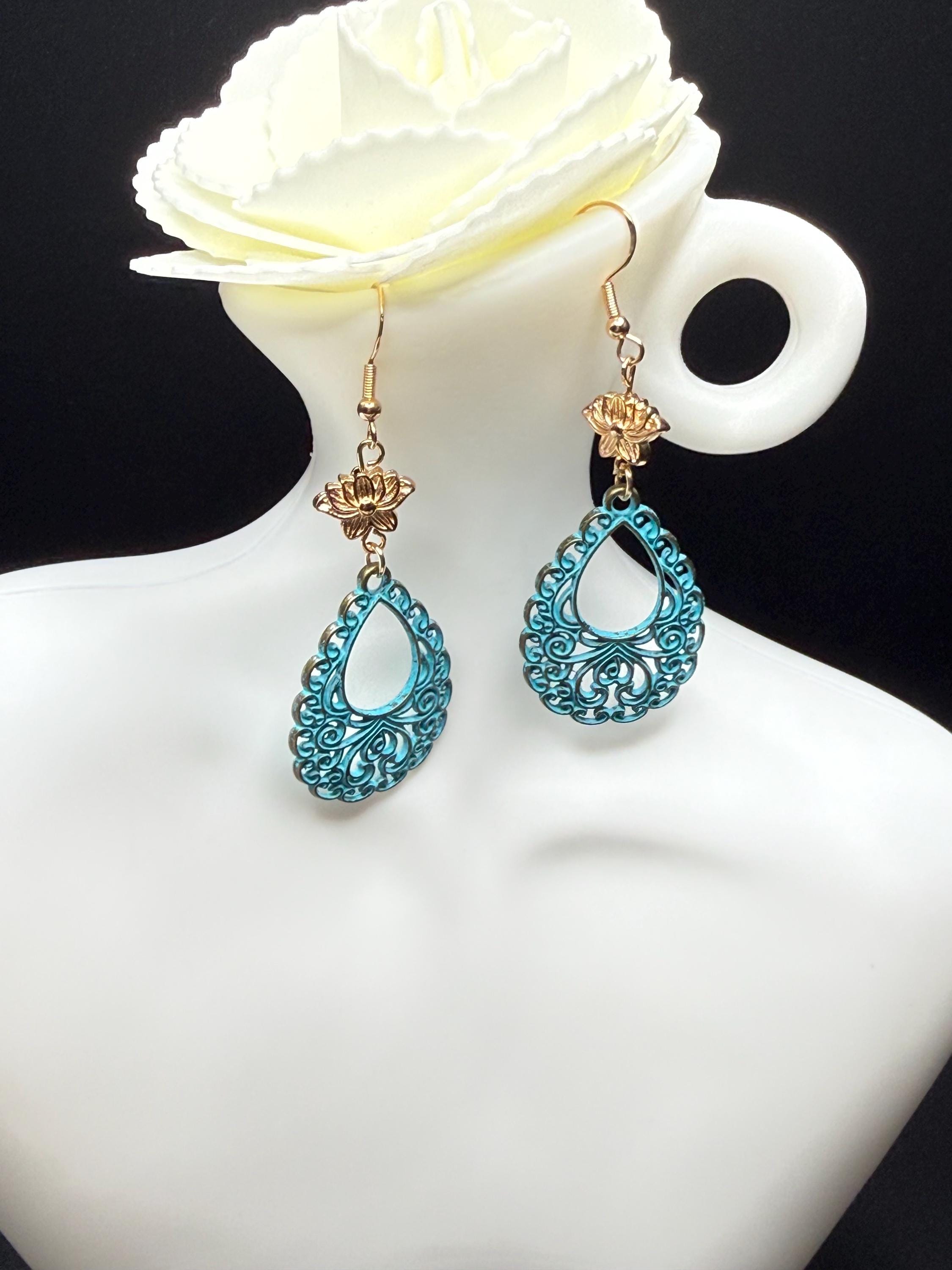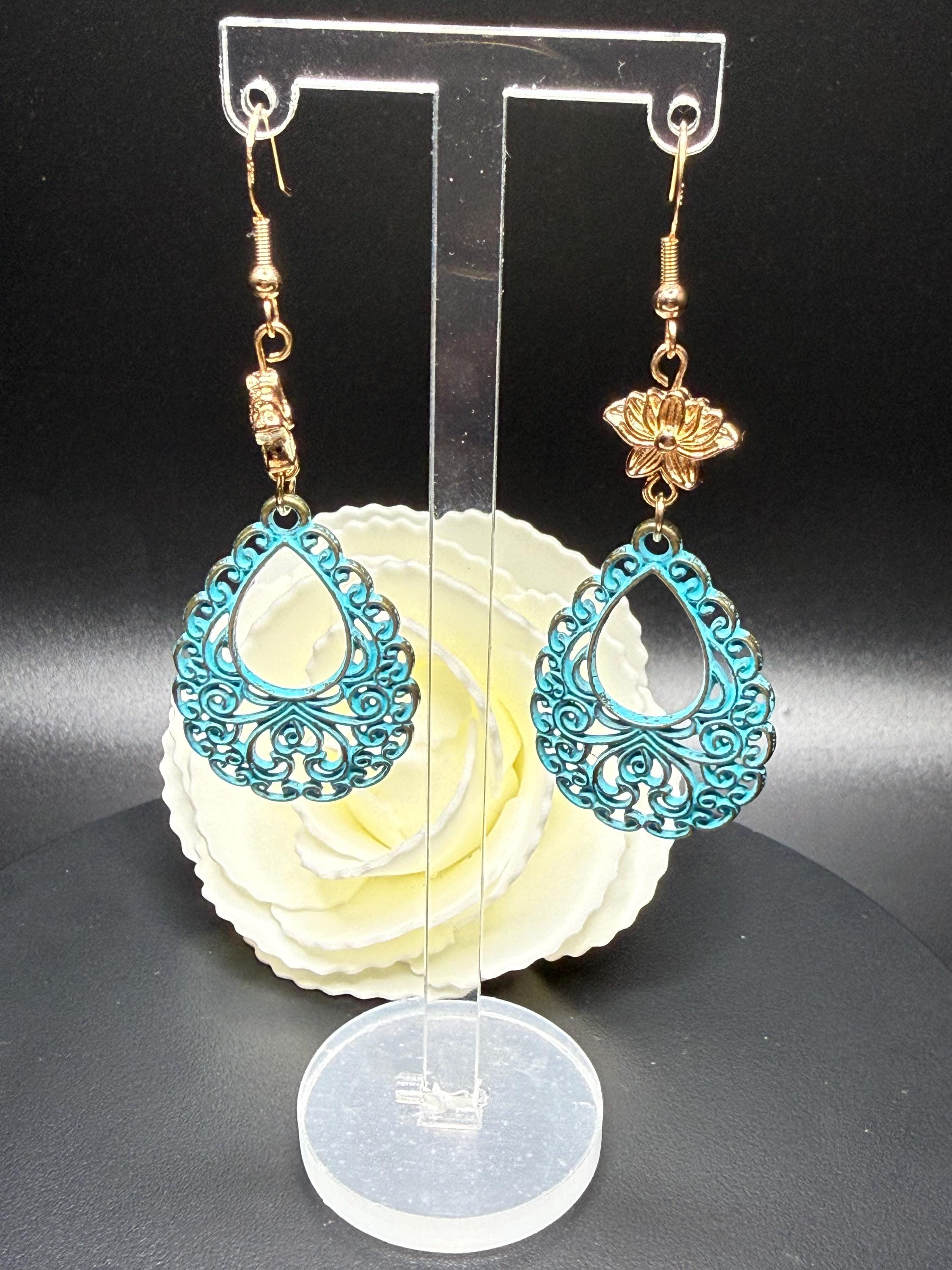 Antique Gold Flower and Lace Patina Hoop Earrings