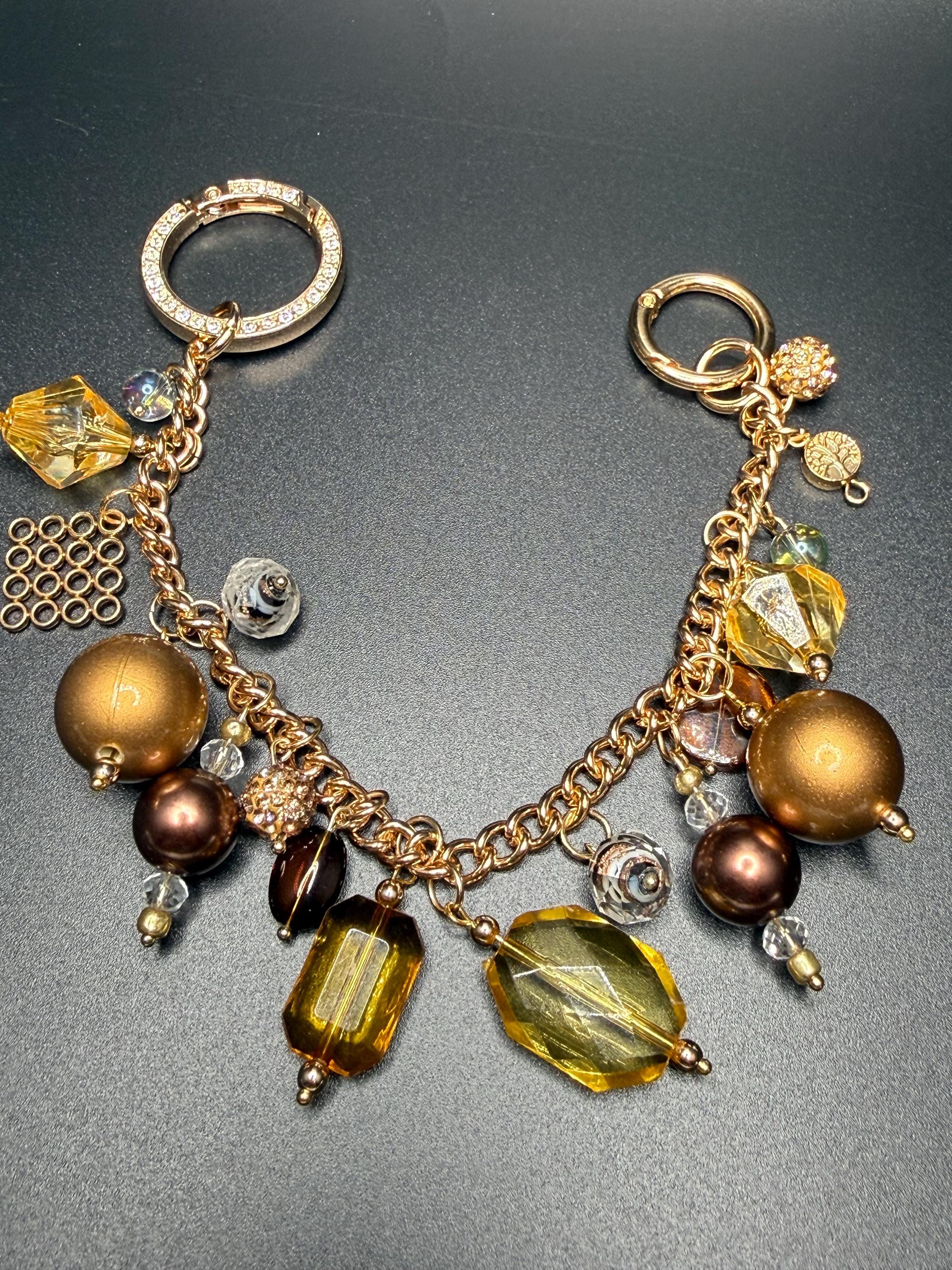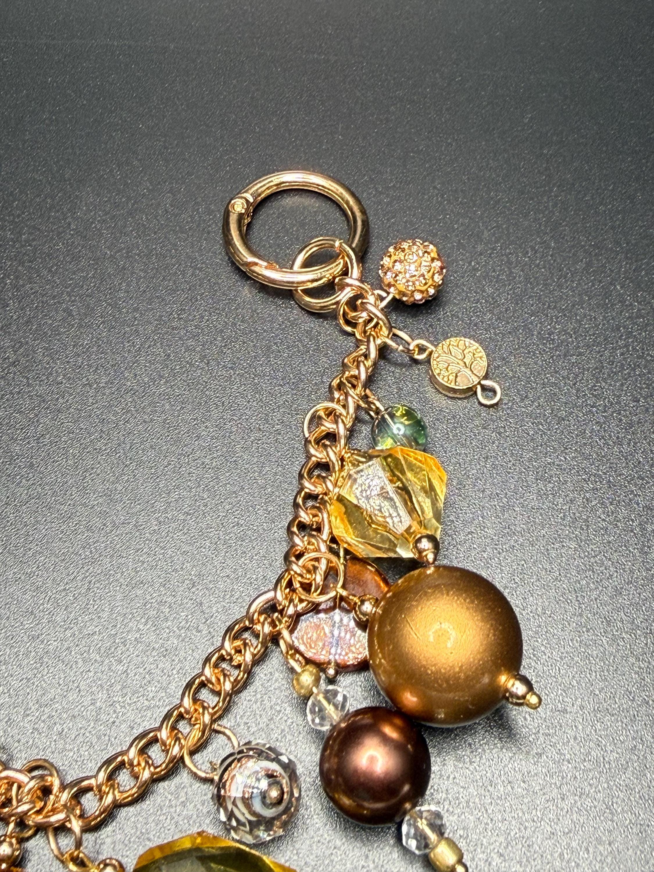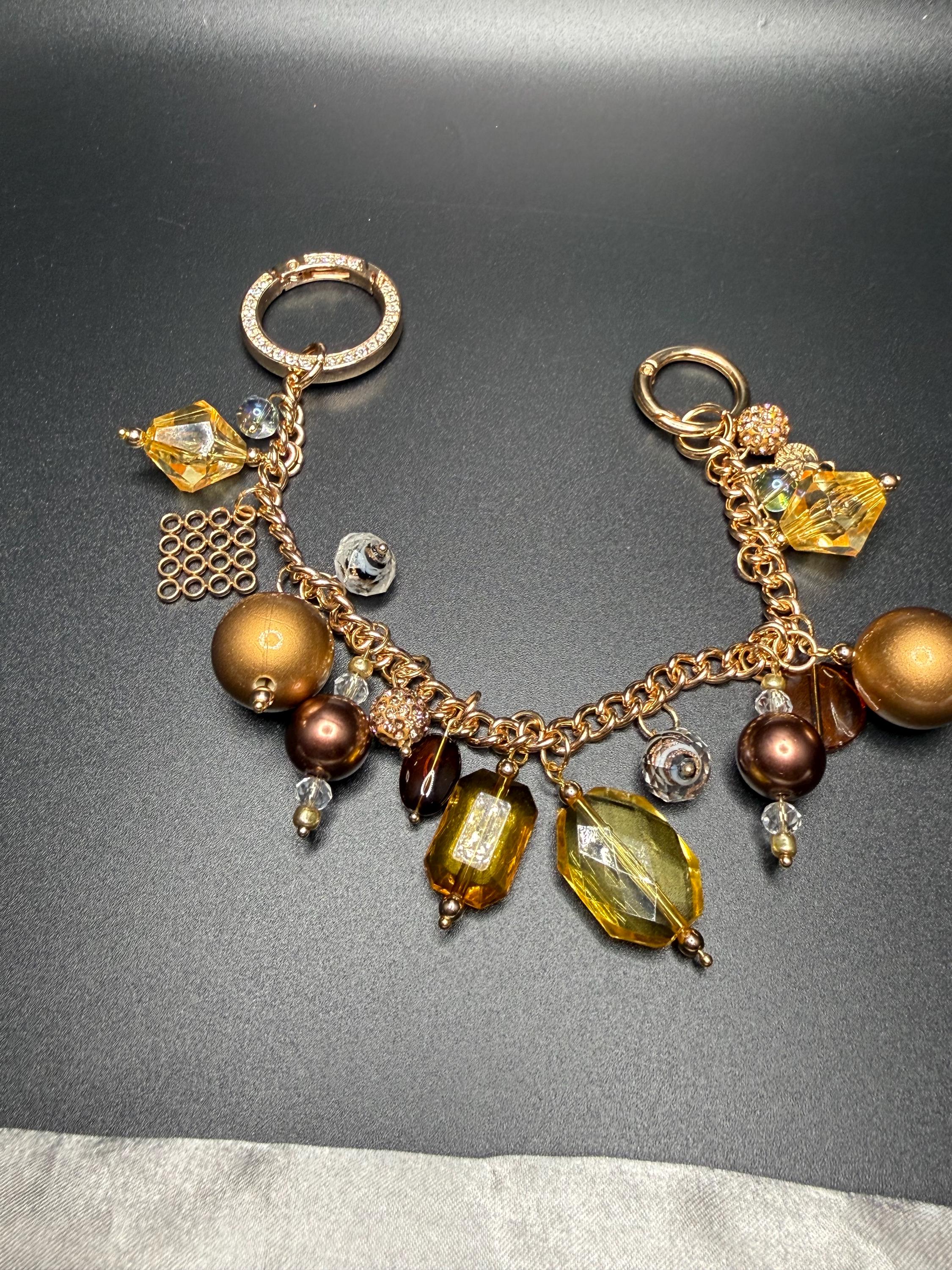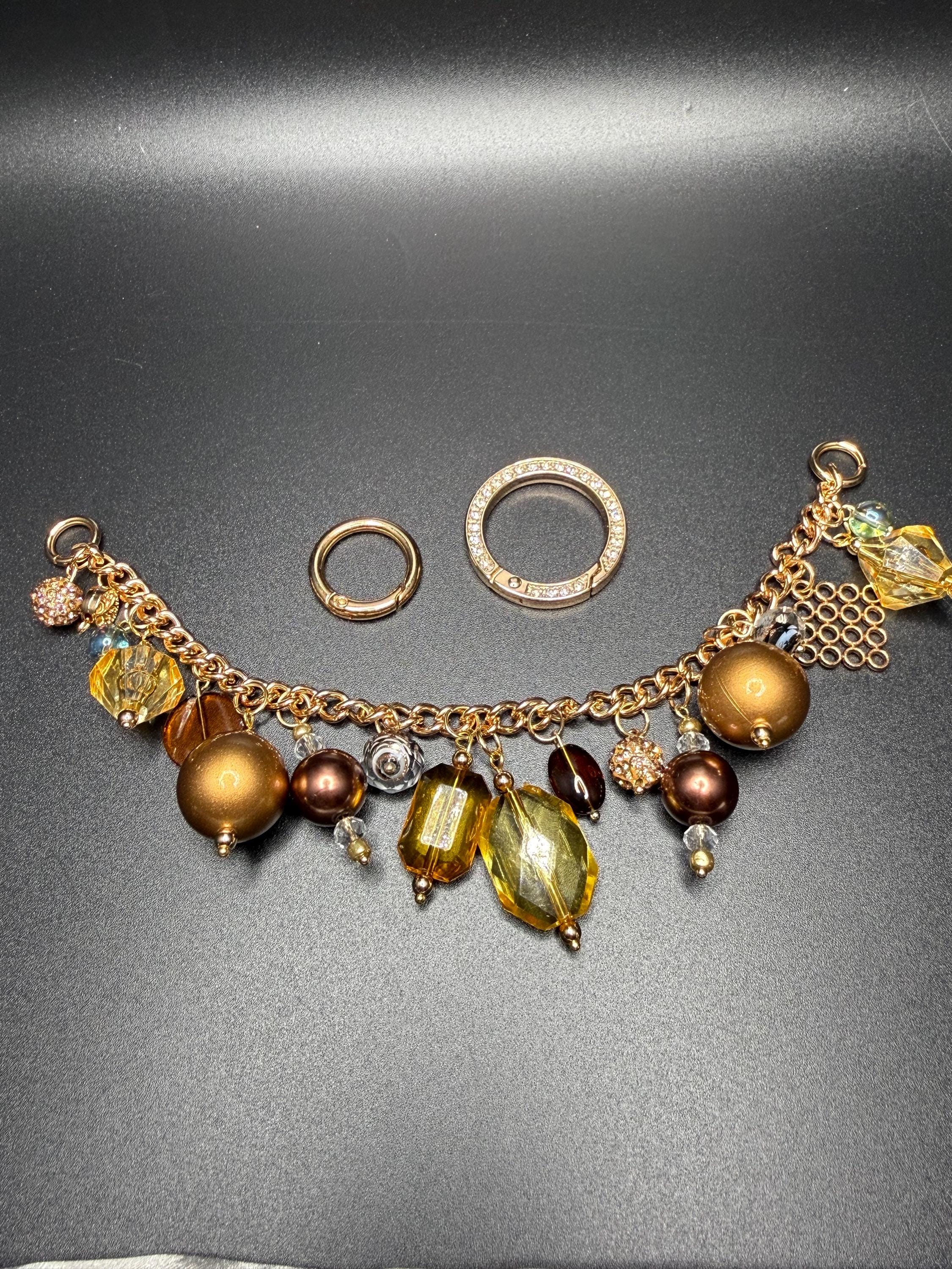 Bronze and Gold Beaded Purse Charm Bracelet with Bling O Ring