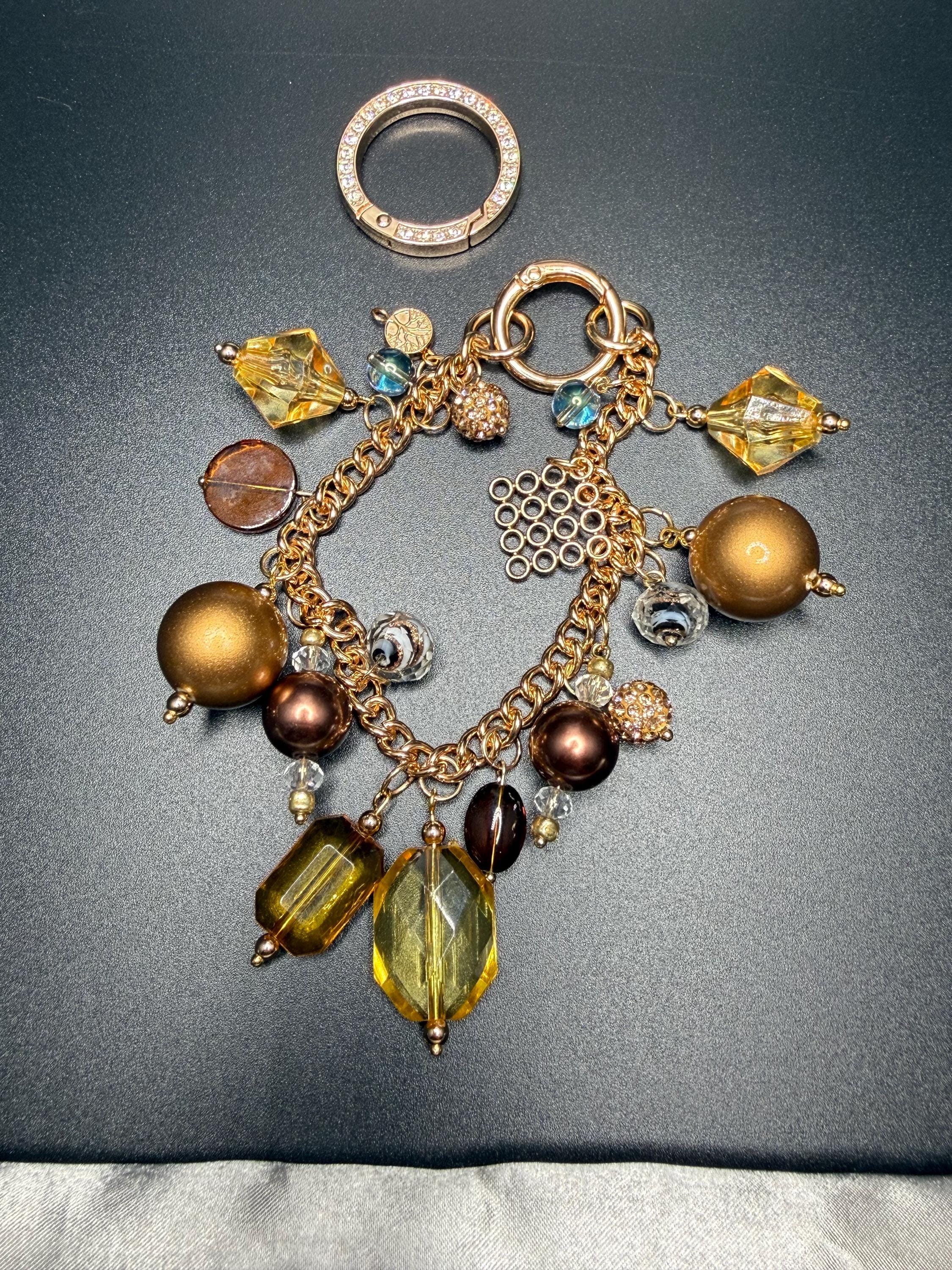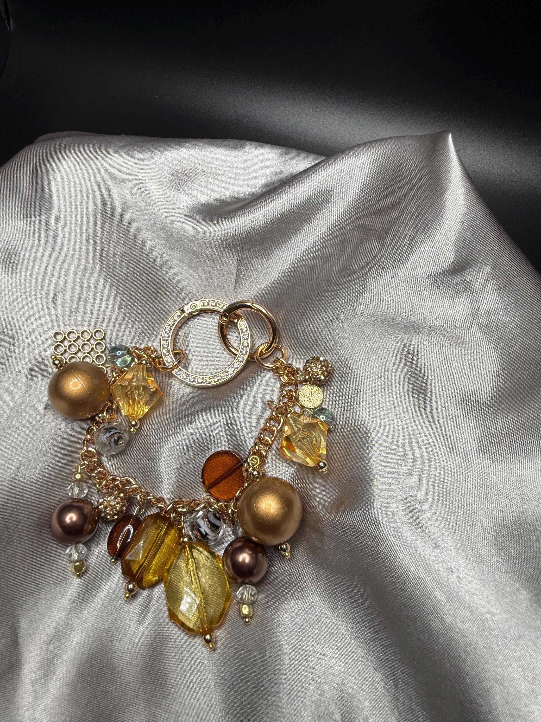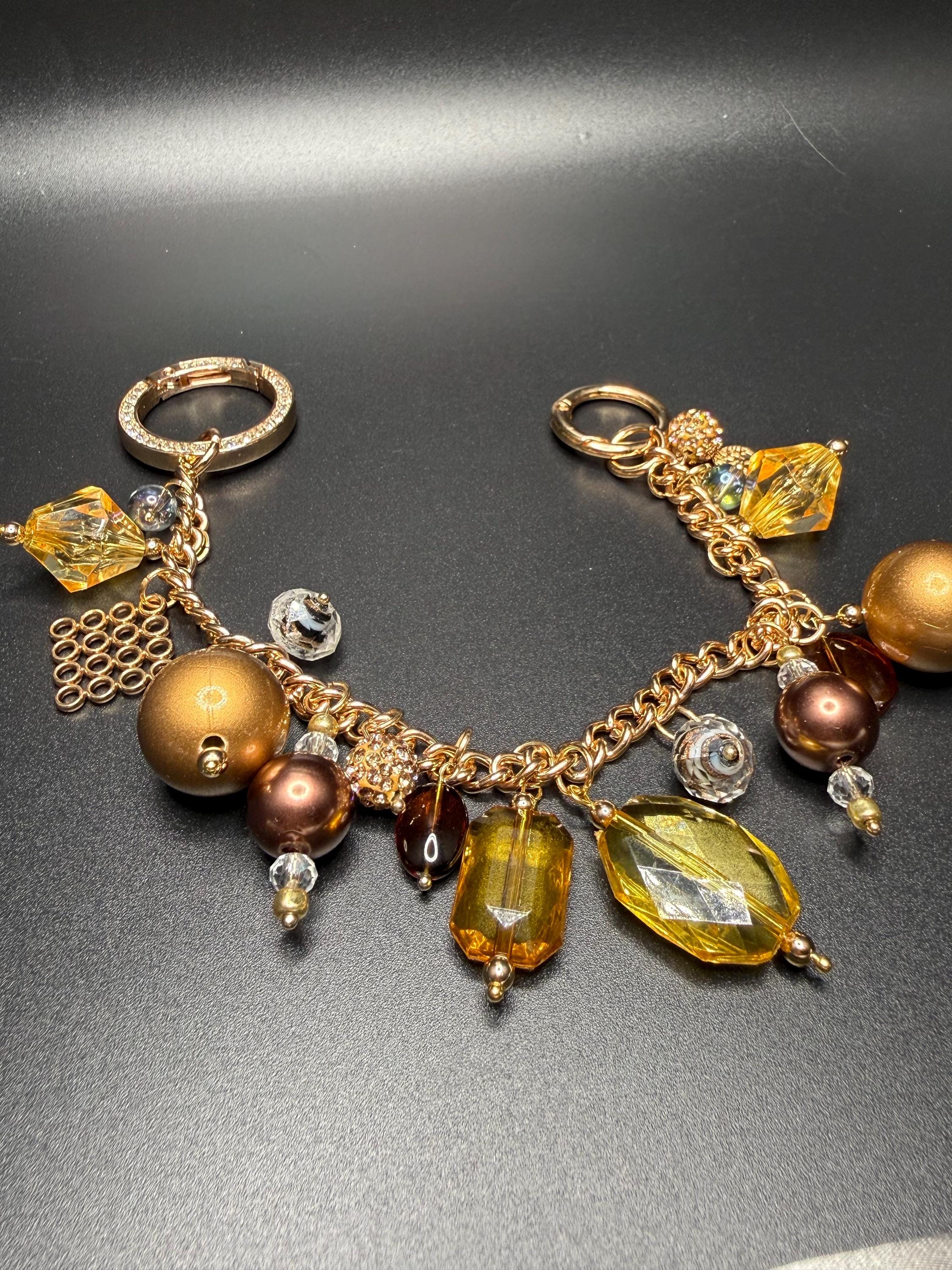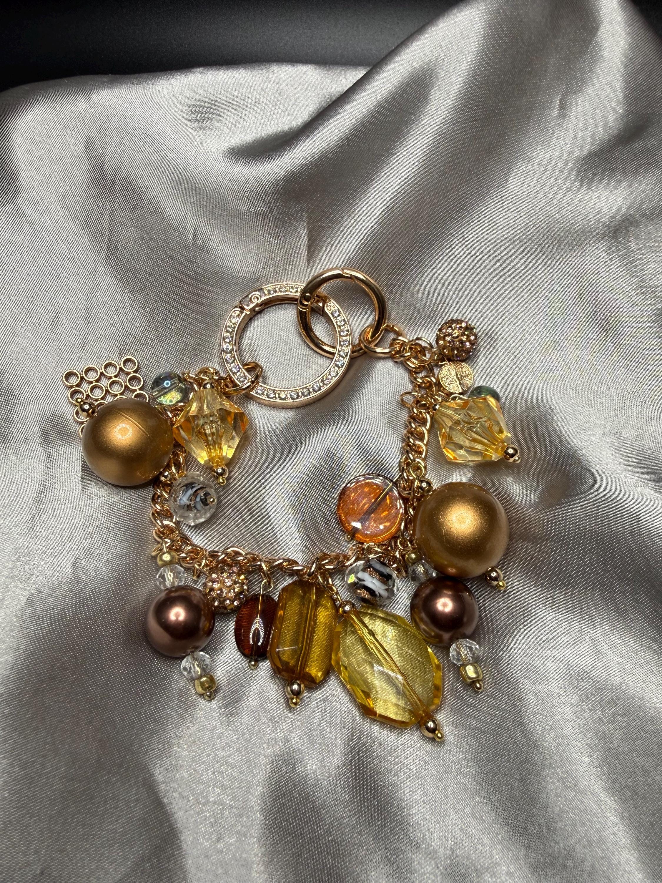 Bronze and Gold Beaded Purse Charm Bracelet with Bling O Ring