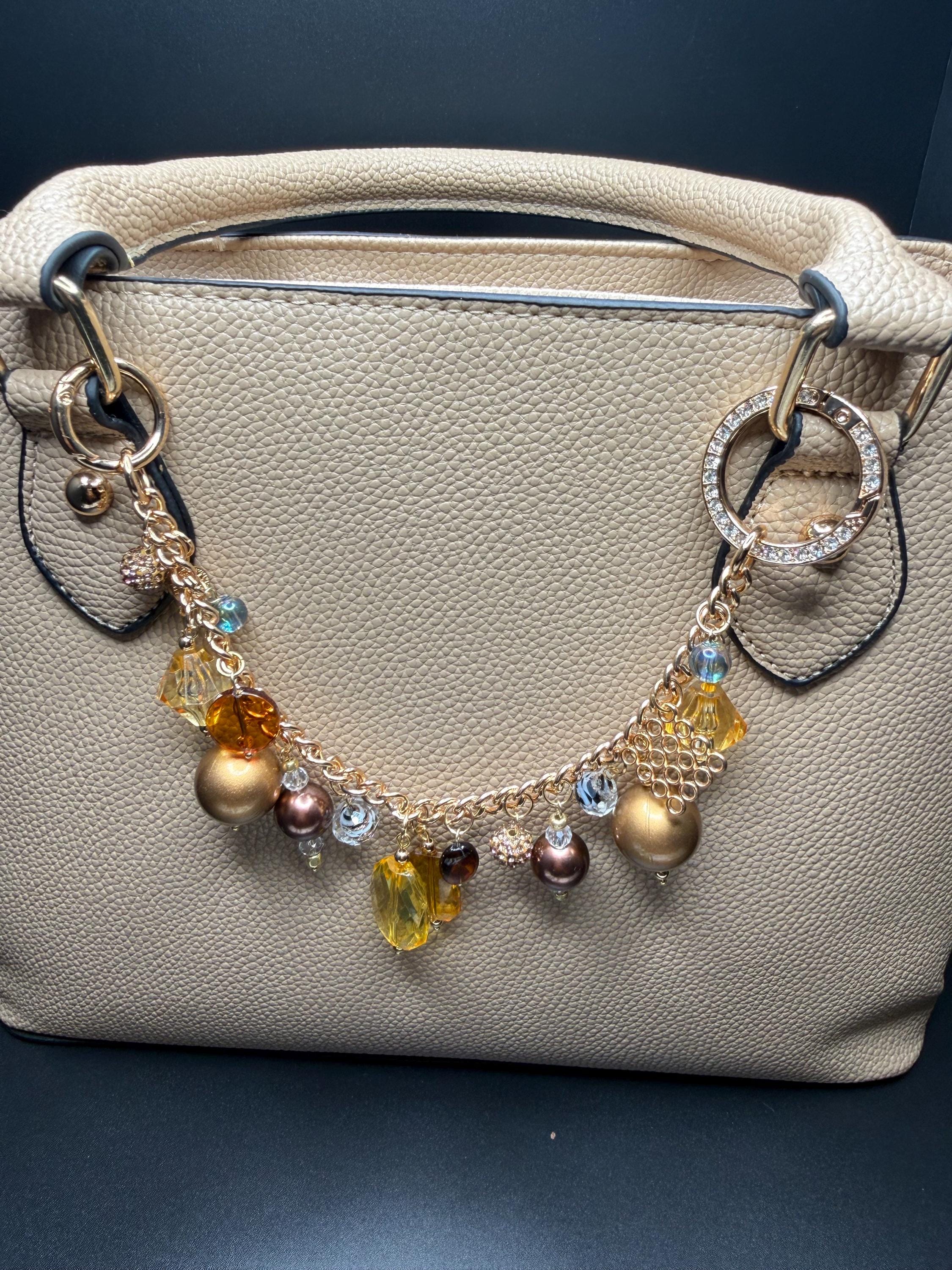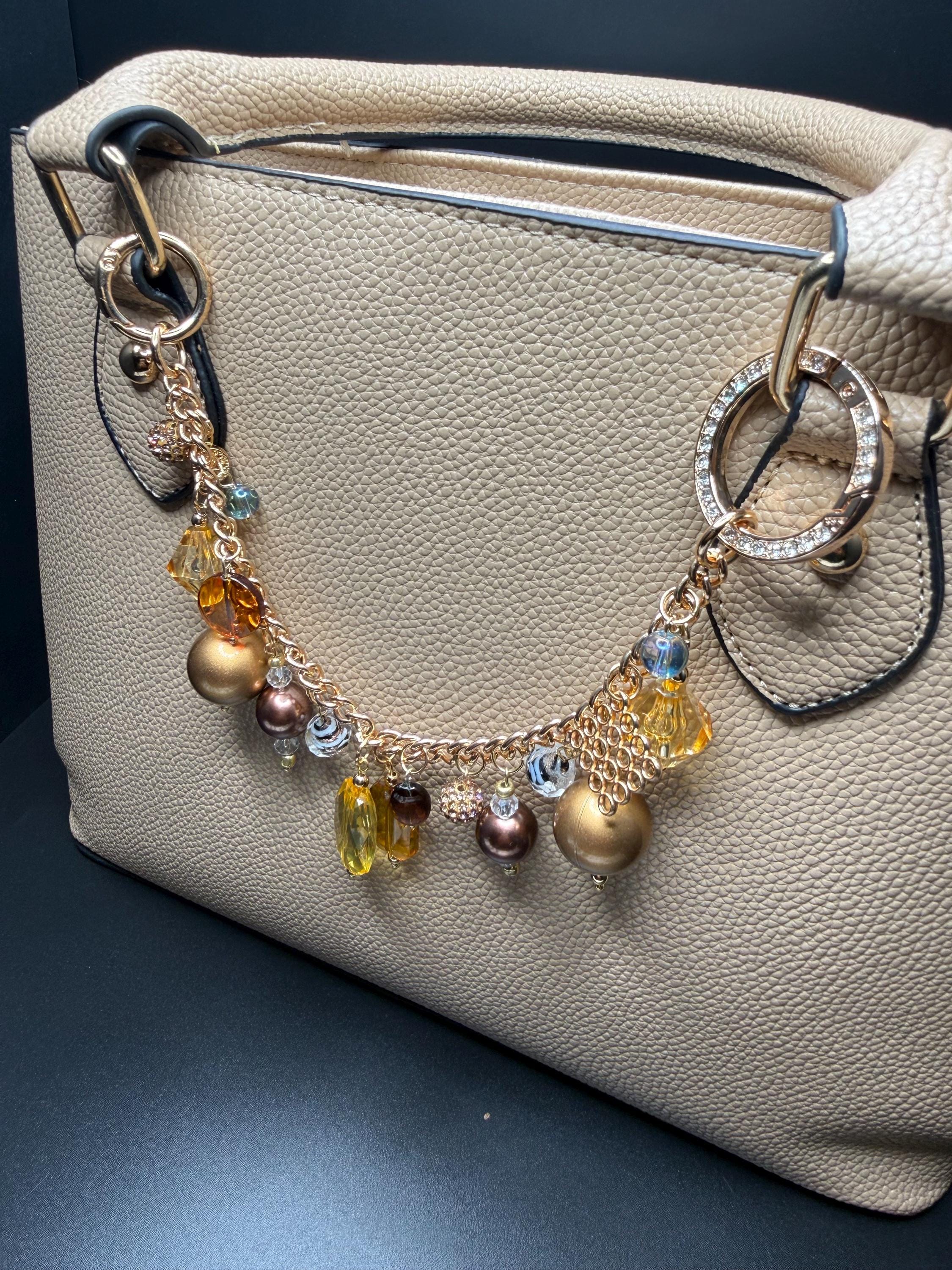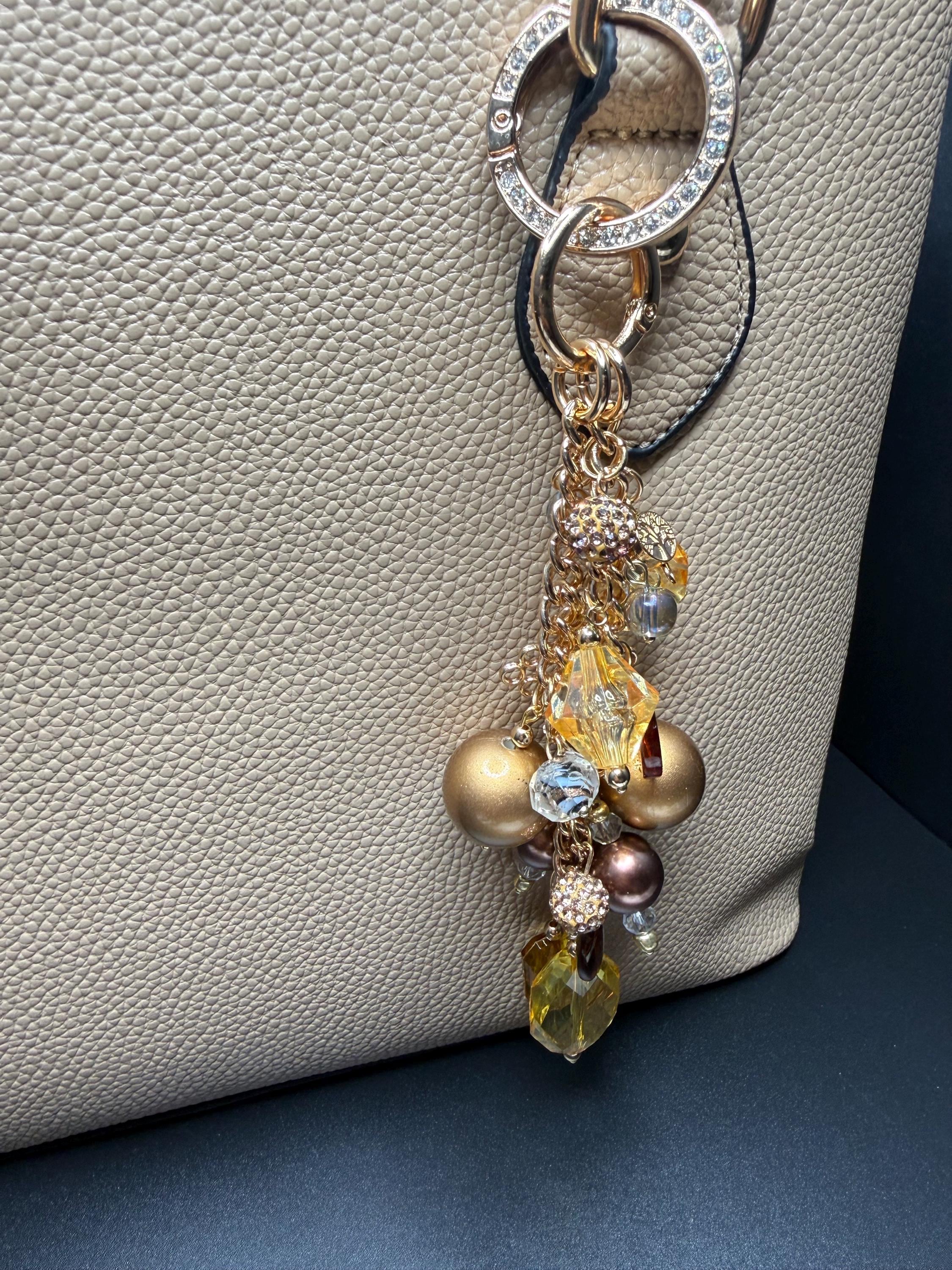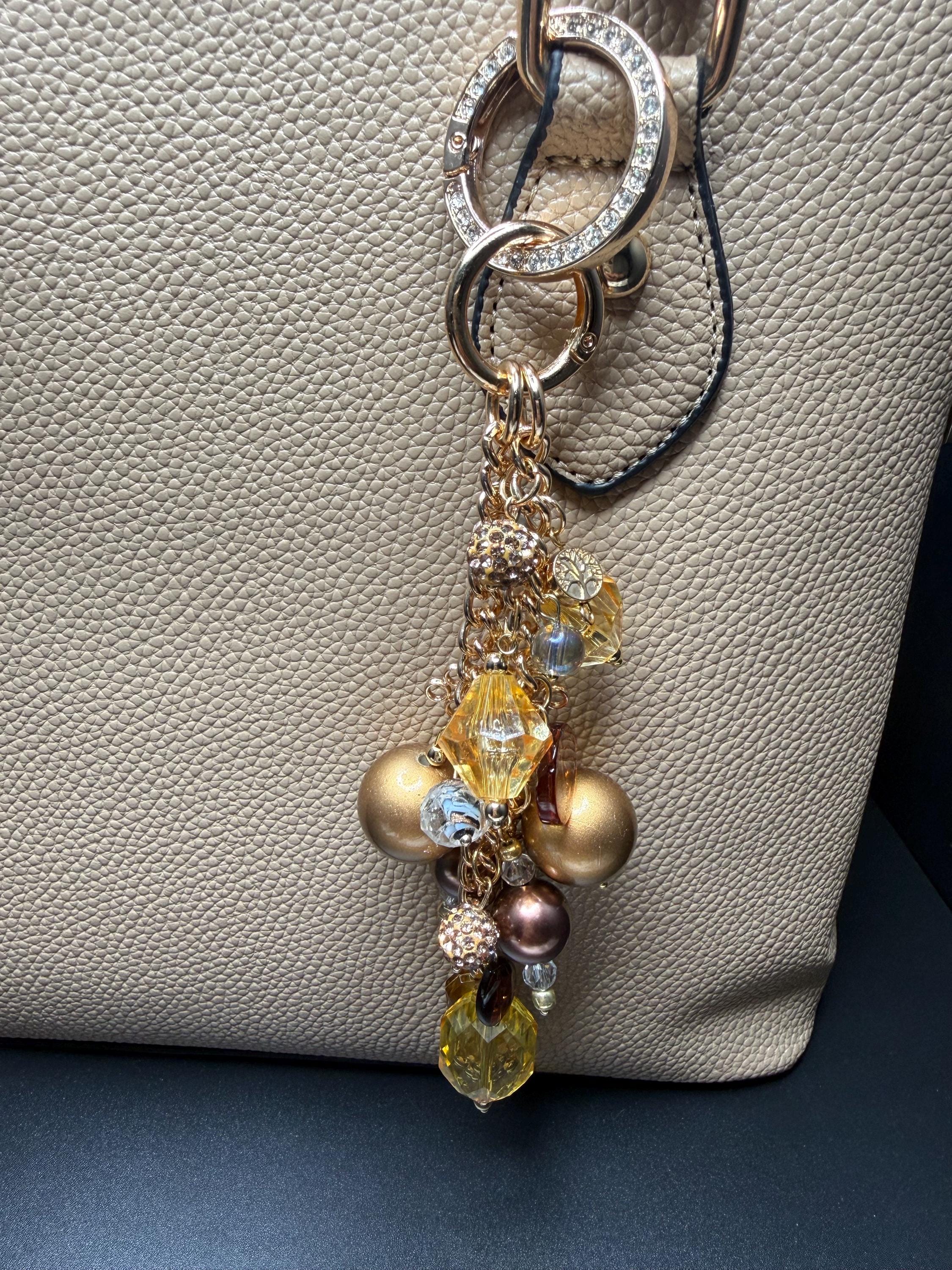 Bronze and Gold Beaded Purse Charm Bracelet with Bling O Ring